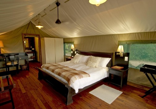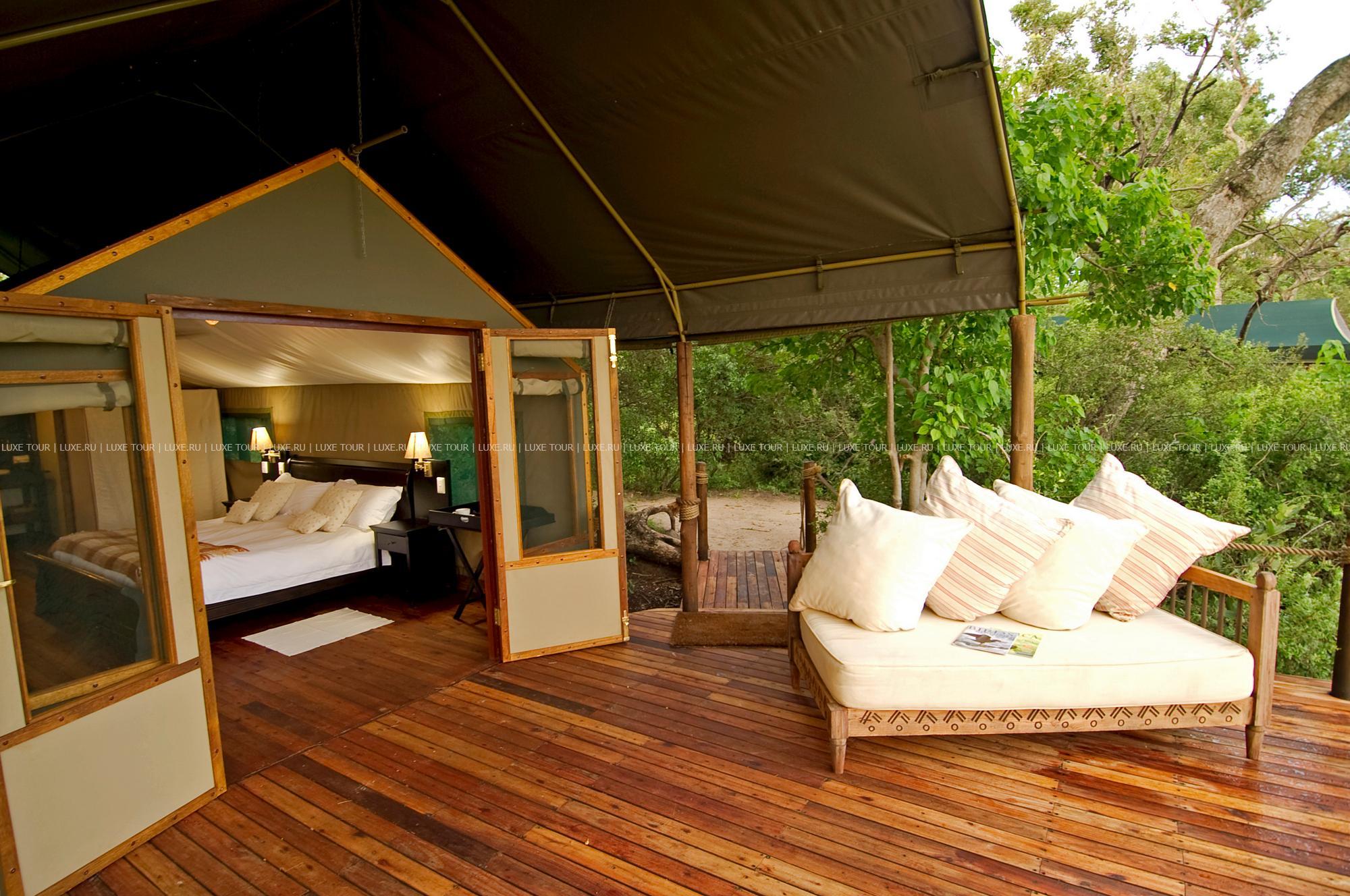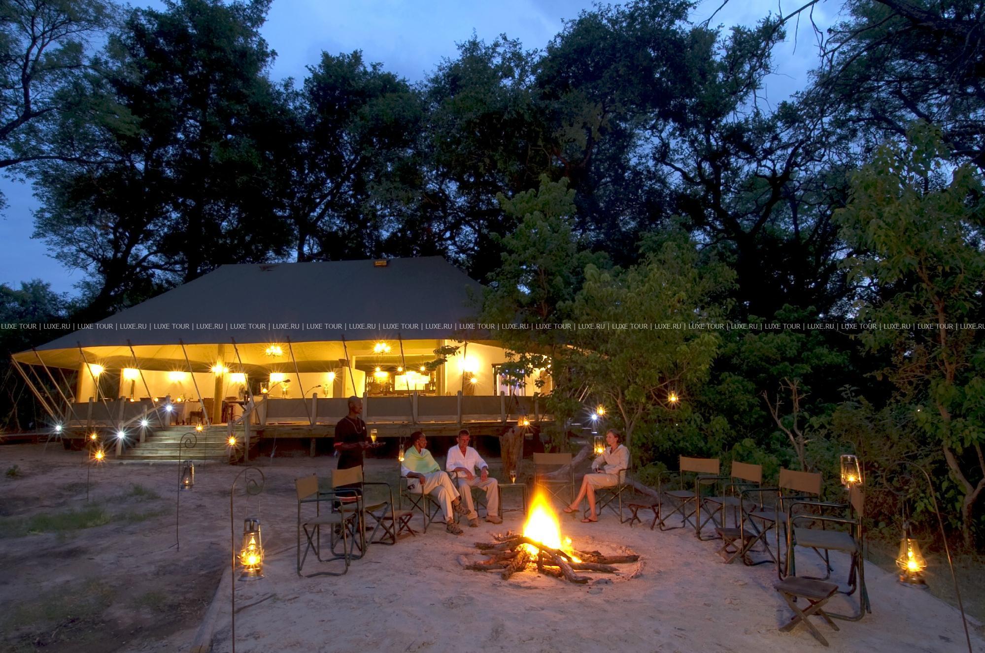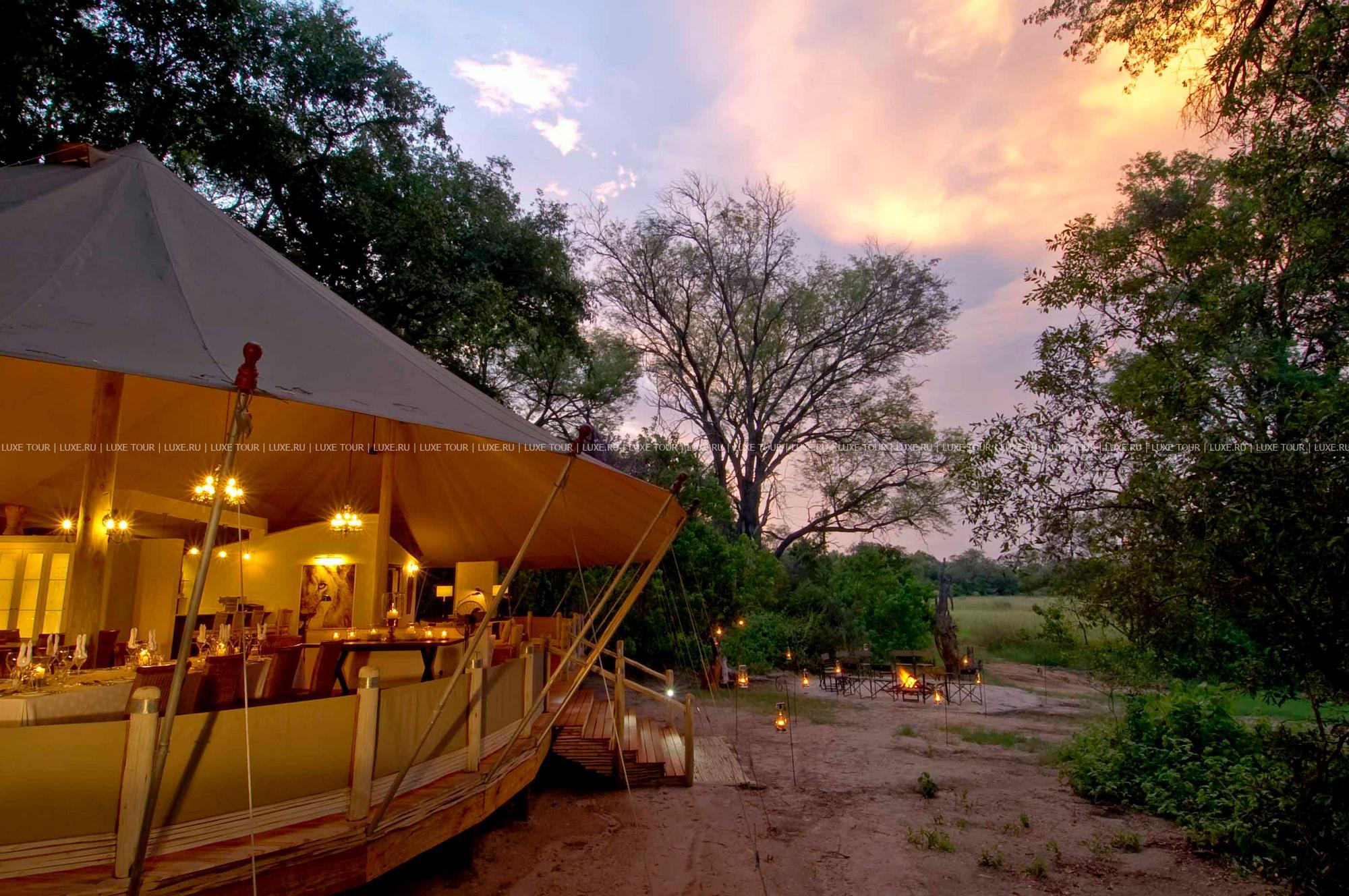 Лодж-кэмп расположен в дельте реки Окаванго, в частном заповеднике рядом с южной границей парка Мореми. Заповедник занимает 1000 кв. км и включает в себя буш, луга, речные протоки и другие ландшафтные зоны. Философия лоджа базируется на поддержании полной гармонии с окружающей средой: живые деревья здесь составляют часть интерьера. В центре комплекса расположена главная веранда, настолько органично вписанная в ландшафт, что издалека теряется за ветвями большой кигелии (разновидность дерева). На веранде размещаются общая обеденная зона, гостиная с библиотекой и бар, с широкой террасы открывается панорамный вид на окрестные равнины. Неподалеку, в тени кигелий и эбеновых деревьев, расположены 8 комфортабельных тентов-шатров, оформленных в колониальном стиле.