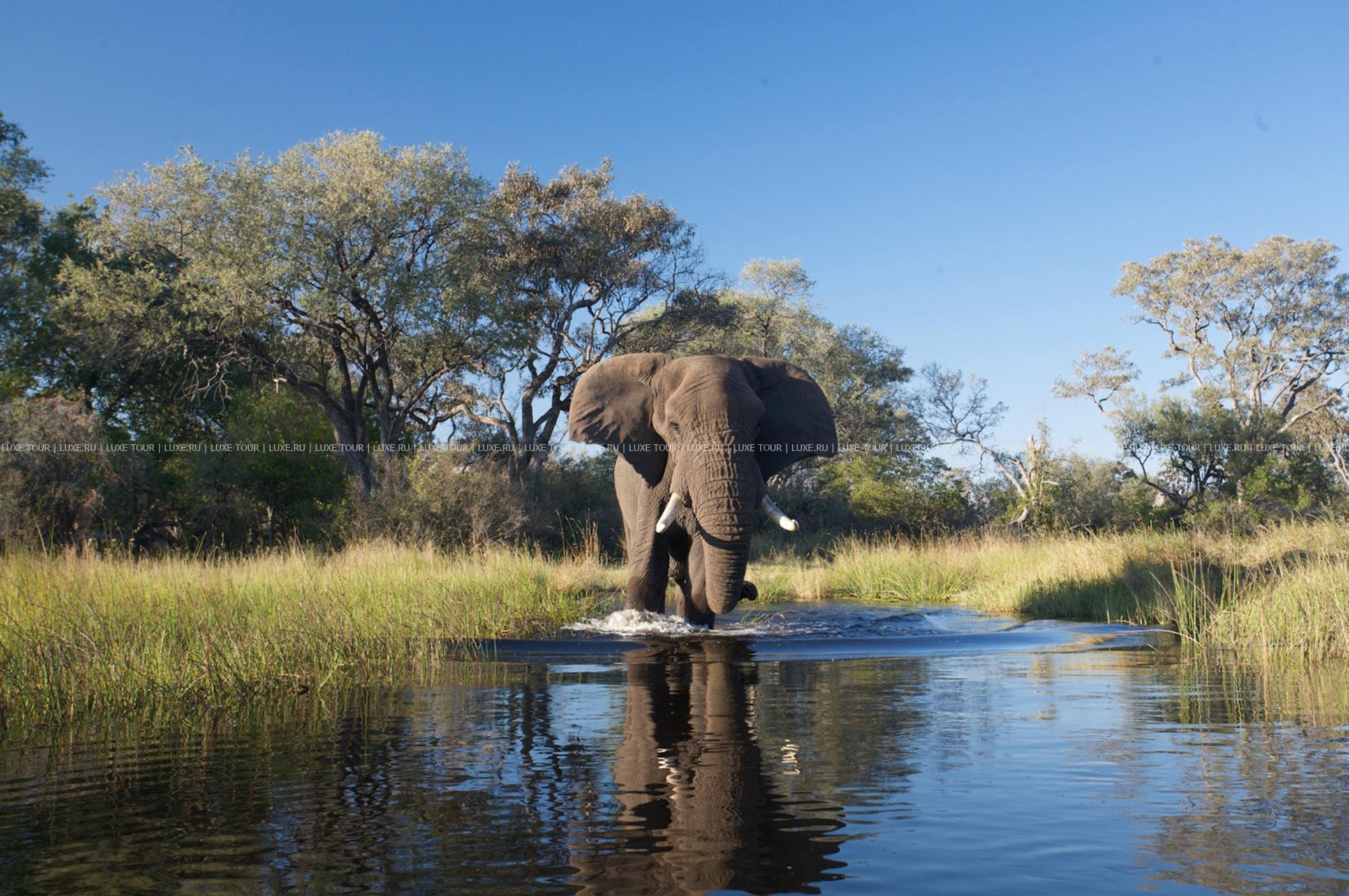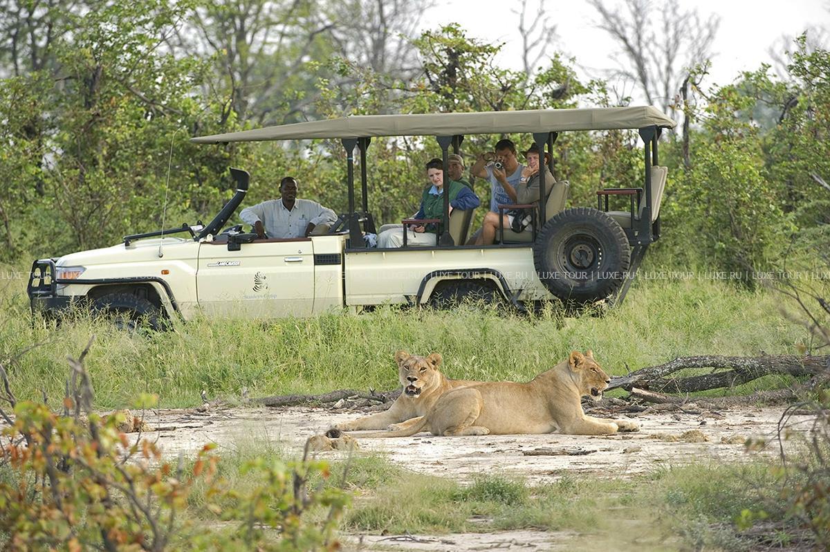 Дневные и ночные сафари в отрытых джипах, изготовленных по специальному заказу, наблюдение за птицами, прогулки на традиционных африканских пирогах mokoro, пешие маршруты в сопровождении опытных гидов; за дополнительную плату предлагается общение со слонами в естественных условиях (прогулки в буш и пикники – в «компании» семьи из трех слонов).