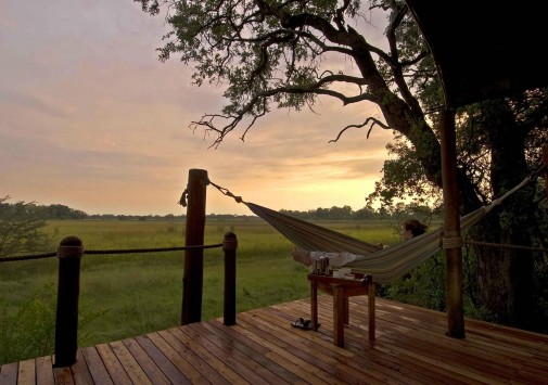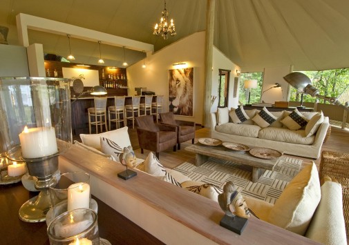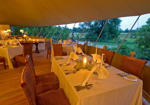 Обеденная зона с общим столом и баром располагается на веранде в центре лагеря, в тени большой кигелии. В лагере подают лучшие блюда африканской кухни и изысканные домашние вина. Предлагаются пикники в буше.