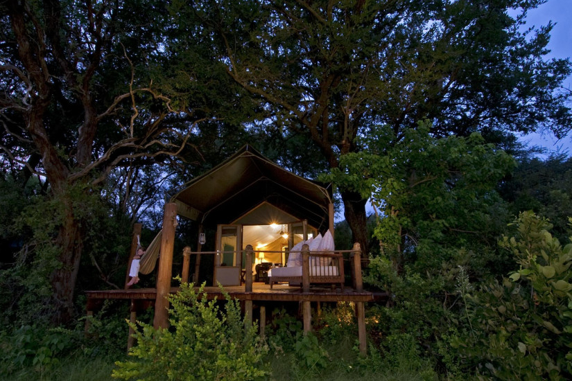 - Лодж состоит из 8 комфортабельных тентов-шатров, оформленных в колониальном стиле. В спальнях стоят кровати с резными спинками и индивидуально подобранная антикварная мебель из дерева местных пород. Колониальный шик интерьерам придают изысканные драпировки высочайшего качества, элегантные люстры, бра и напольные светильники; восточные ковры с затейливыми узорами переносят гостей в Африку 19 века.