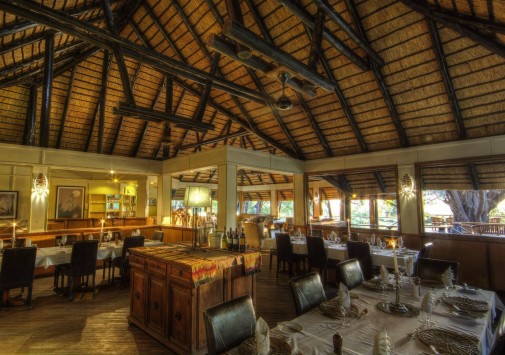 В изысканном ресторане на веранде, в тени эбеновых деревьев, сервируют лучшие блюда местной кухни. Традиционные африканские ужины готовят и подают в крытом дворе «бома» (boma) при свете большого костра. Работает бар с большим выбором экзотических коктейлей.