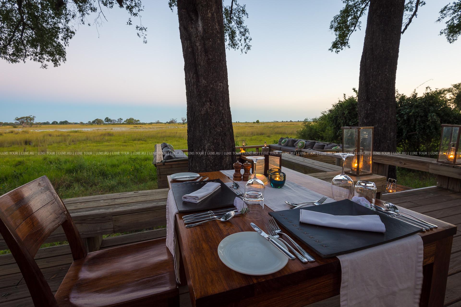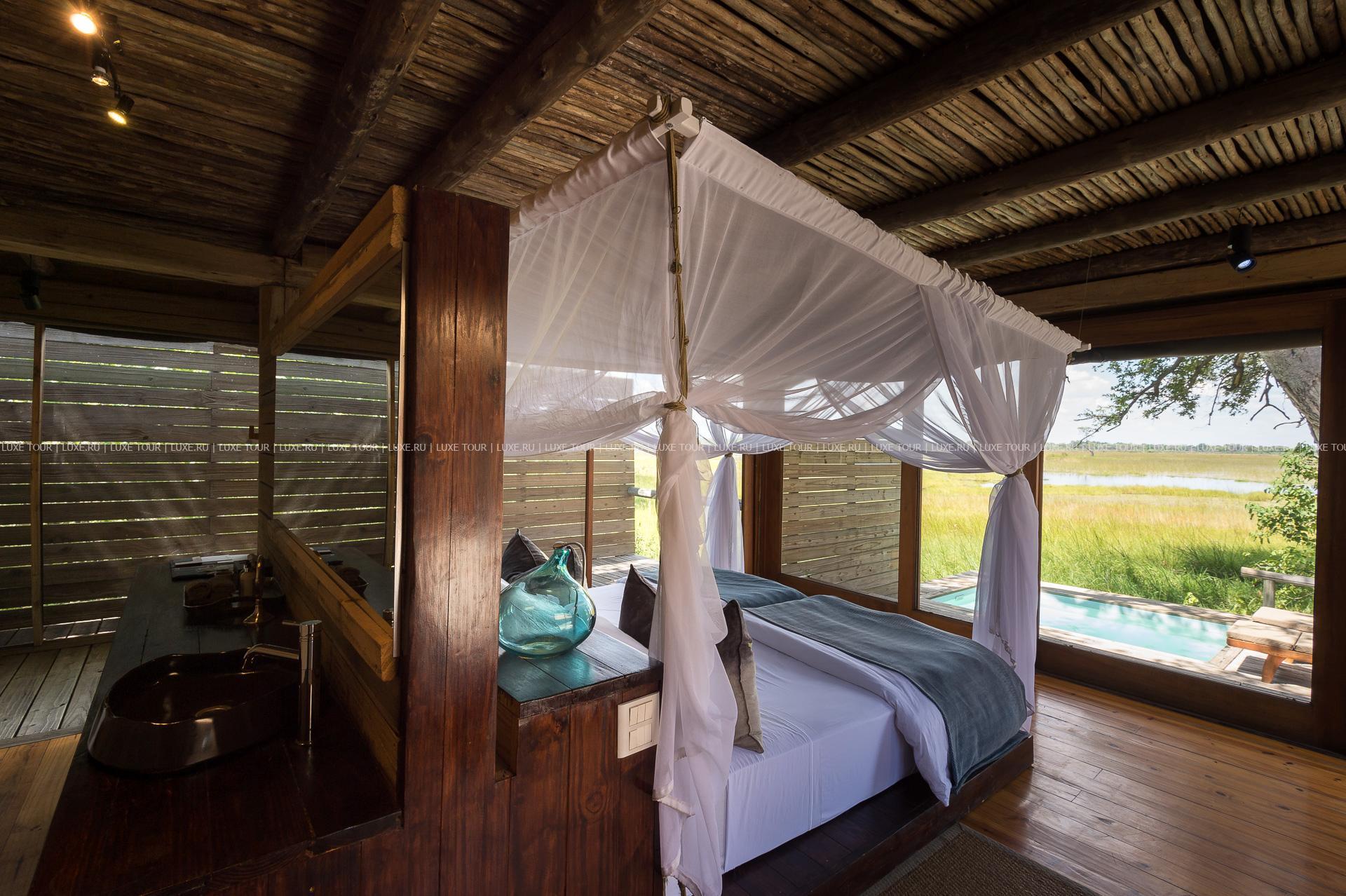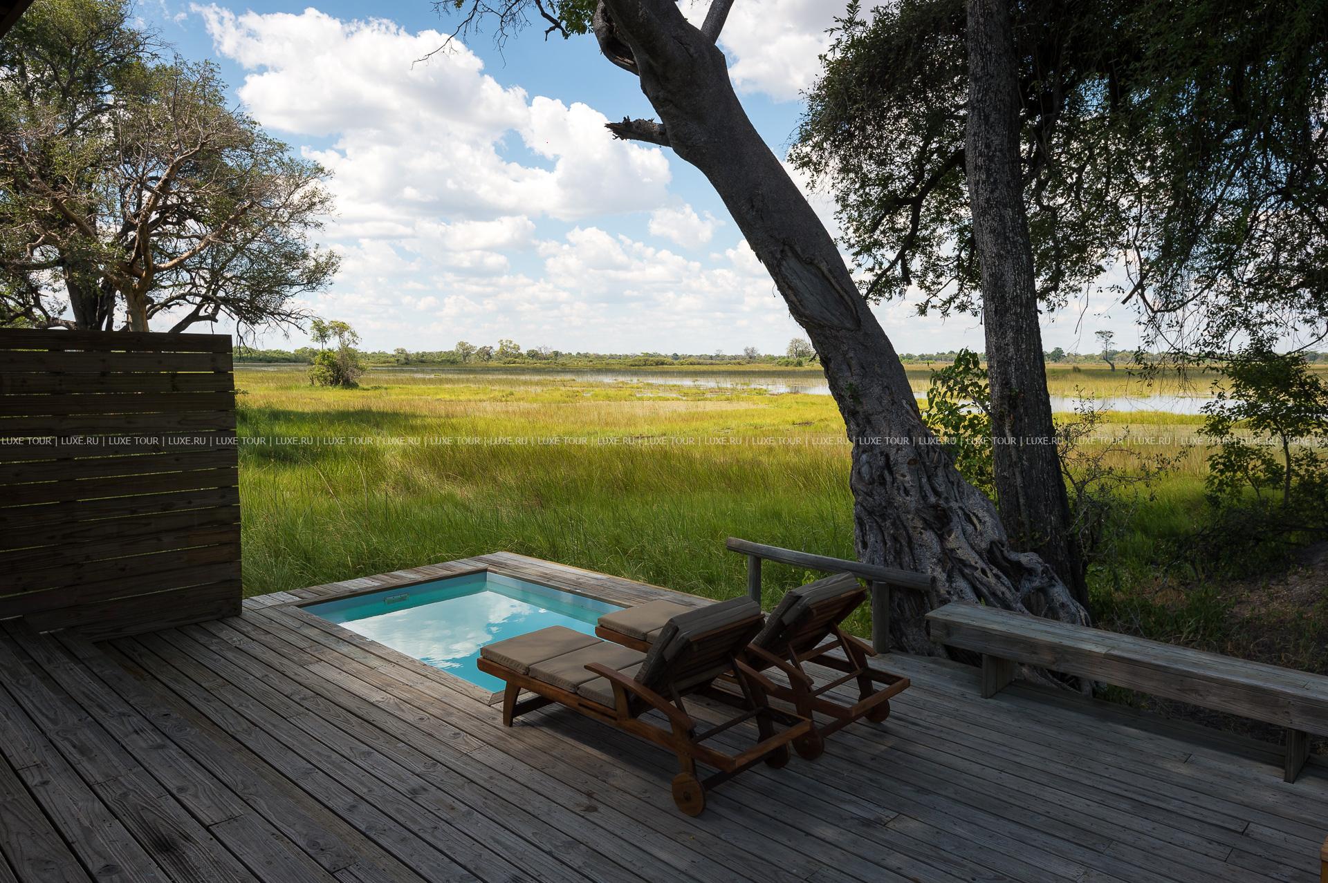Отель расположен в дельте реки Окаванго, в северной части, на границе парка Мореми, в 38 минутах перелета от Мауна и аэропорта.
