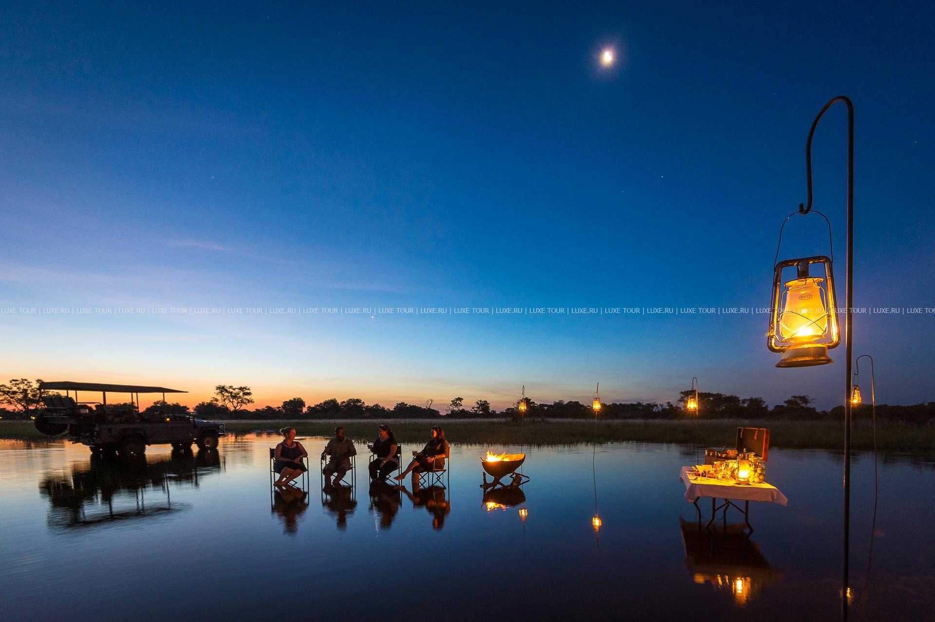 Сафари в открытых джипах, пешие сафари, наблюдение за птицами, ночные экскурсии, прогулки по реке на пирогах mokoro и в лодках, лекции.