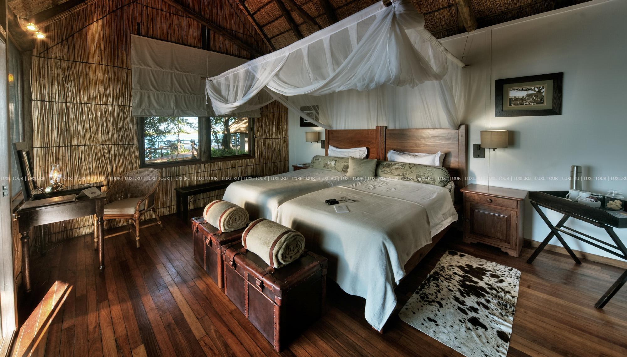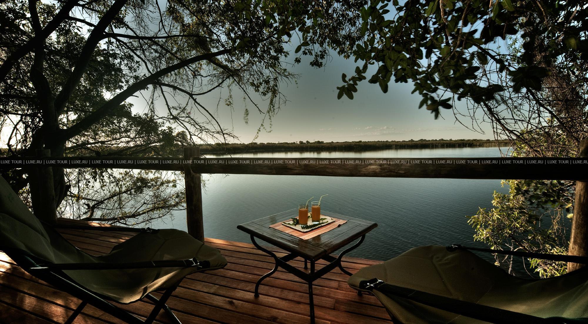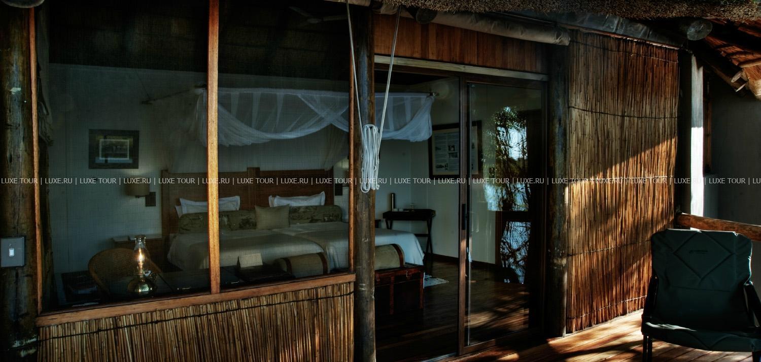 Из каждого номера открывается живописный вид на каналы с чистейшей водой и окрестные острова. В лодже царит атмосфера спокойствия, уединения и гармонии с природой. Лагуна Кугана считается самой живописной частью дельты реки Окаванго и лучшим местом в Ботсване для наблюдения за птицами. Помимо множества экзотических видов птиц, в окрестностях водятся антилопы, львы, гиппопотамы и крокодилы. Лодж знаменит своей роскошной домашней кухней и ужинами под открытым небом.