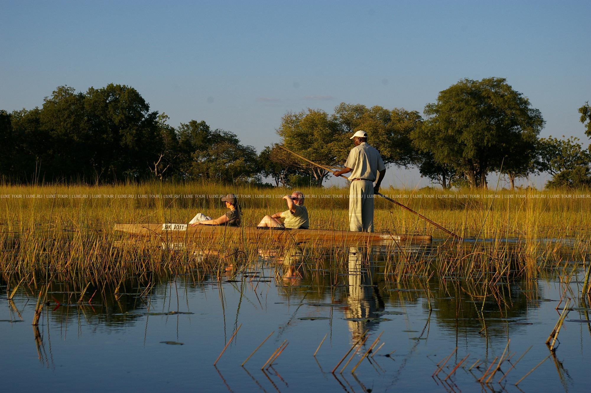 Наблюдение за птицами, экскурсии по лагуне на пирогах mokoro и моторных лодках, водные сафари, рыбалка, пикники на островах. Все экскурсии проводят опытные гиды, выросшие в этой местности и прекрасно ориентирующиеся в окрестностях.