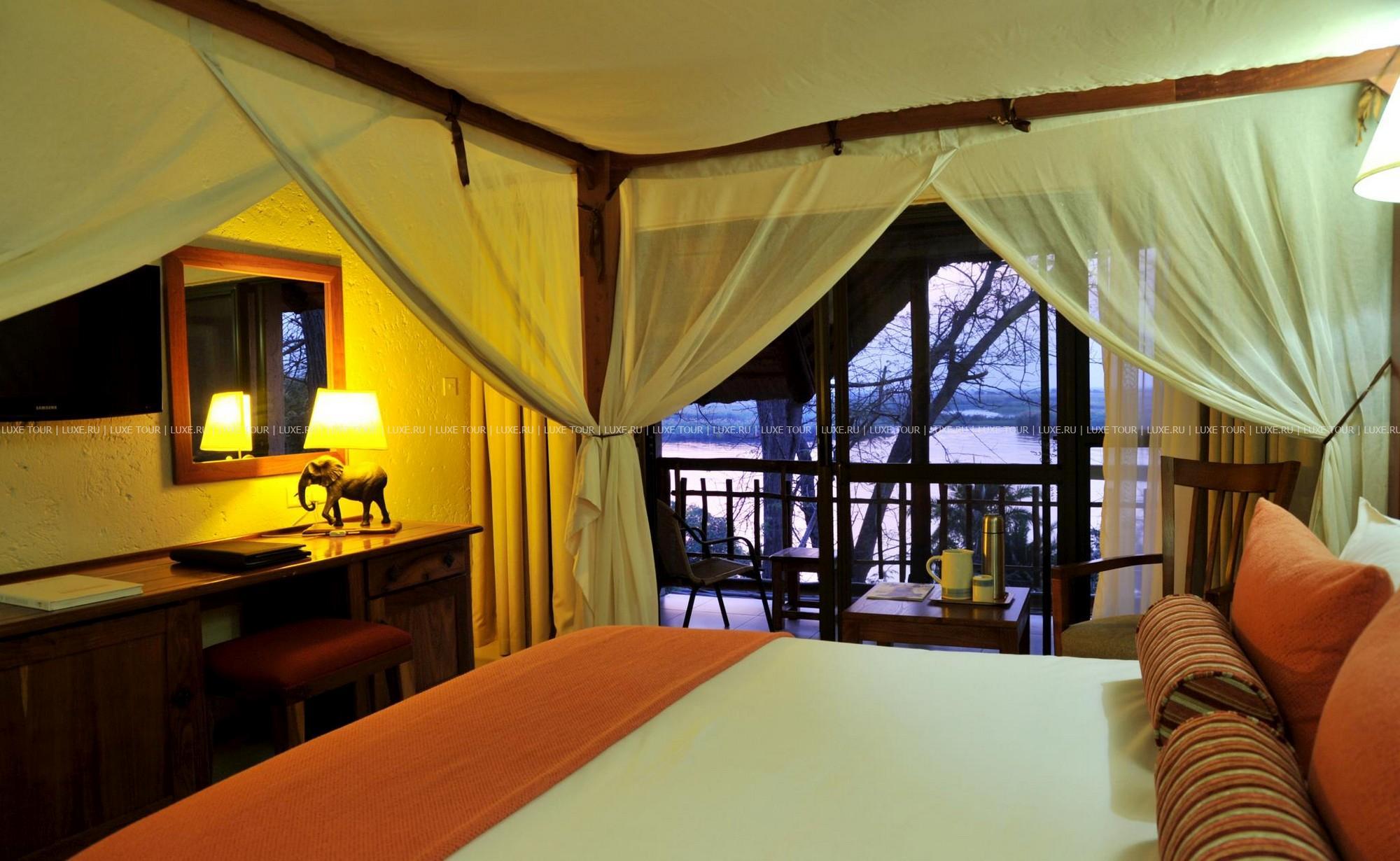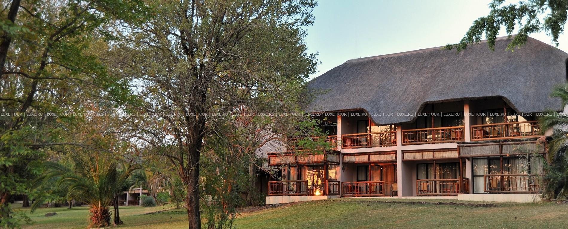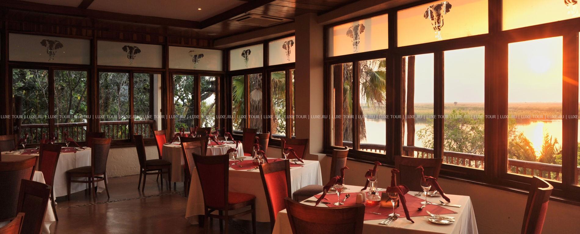 В фешенебельном ресторане сервируют лучшие блюда европейской и африканской кухни, во дворике «бома» у большого костра подают легкие закуски, в баре с живописным видом на реку предлагаются изысканные домашние вина. Для любителей активного отдыха есть большой открытый бассейн, поле для гольфа на 9 лунок и волейбольная площадка. В окрестностях водятся буйволы, гиппопотамы, львы, гиены и множество редких птиц, в расположенном по соседству национальном парке Чобе зарегистрировано крупное поголовье африканских слонов.