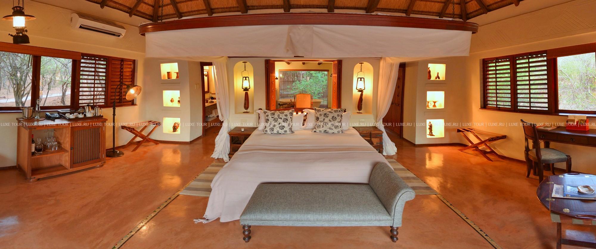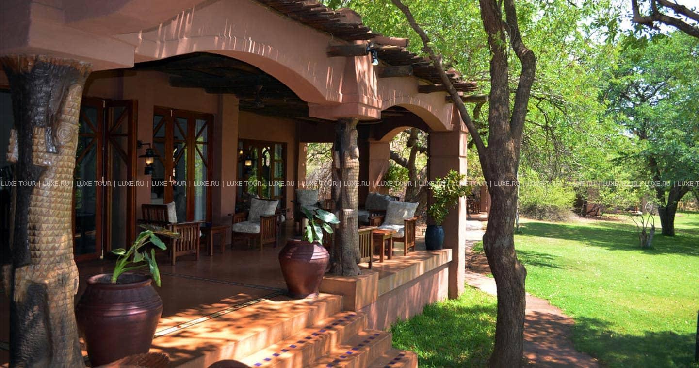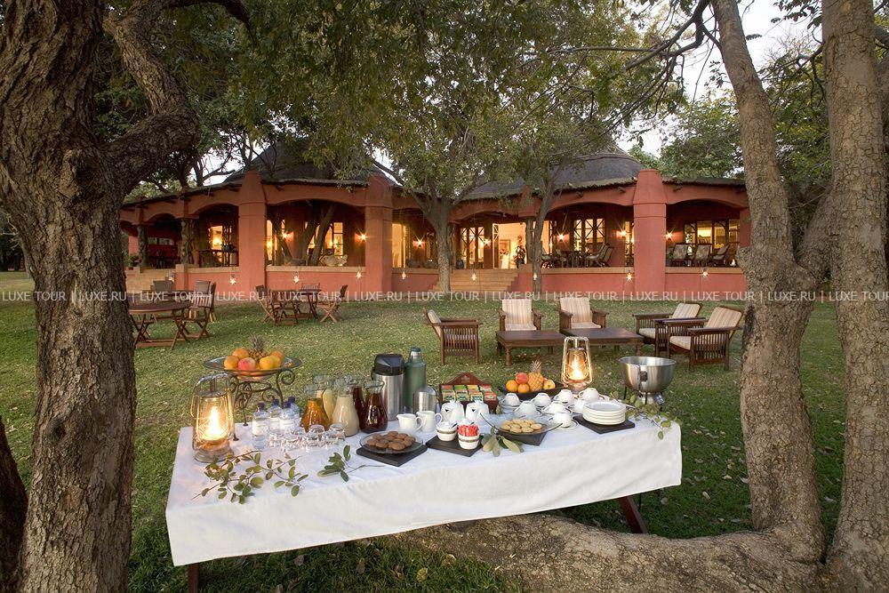 Лодж расположен на берегу реки Чобе, на границе национального парка Чобе. Комплекс состоит из коттеджей-бунгало, построенных и оформленных в традиционном африканском стиле. Лодж славится изысканным оформлением интерьеров, безупречным сервисом и превосходной африканской кухней. В центральном коттедже расположены гостиная с камином и обеденная комната; оба помещения имеют внутренние дворики, из которых открываются виды на реку, острова и бесконечные равнины, простирающиеся до самой границы с Намибией. В оформлении гостиной и обеденной комнаты продумана каждая деталь, деревянные колонны украшены изысканной резьбой, стены декорированы аксессуарами из тростника и керамики и мозаиками на африканские темы. Рядом с центральным зданием расположены 15 роскошных каменных бунгало с соломенными крышами; здесь размещаются номера для гостей. Большой двухъярусный бассейн, винный погреб, библиотека и интернет-центр, эксклюзивные SPA-процедуры и услуги няни для детей делают этот лодж идеальным местом для комфортного отдыха в центре африканской саванны. В лодже предлагаются дневные и ночные сафари в открытых джипах, водные сафари на лодках, изготовленных по специальному заказу, экскурсии на закате по реке Чобе, рыбалка и вертолетные экскурсии к знаменитому водопаду Виктория. В двух шагах от лоджа расположен второй по величине национальный парк Африки – парк Чобе, в котором водятся слоны, гиппопотамы, буйволы, антилопы, львы и другие экзотические животные.