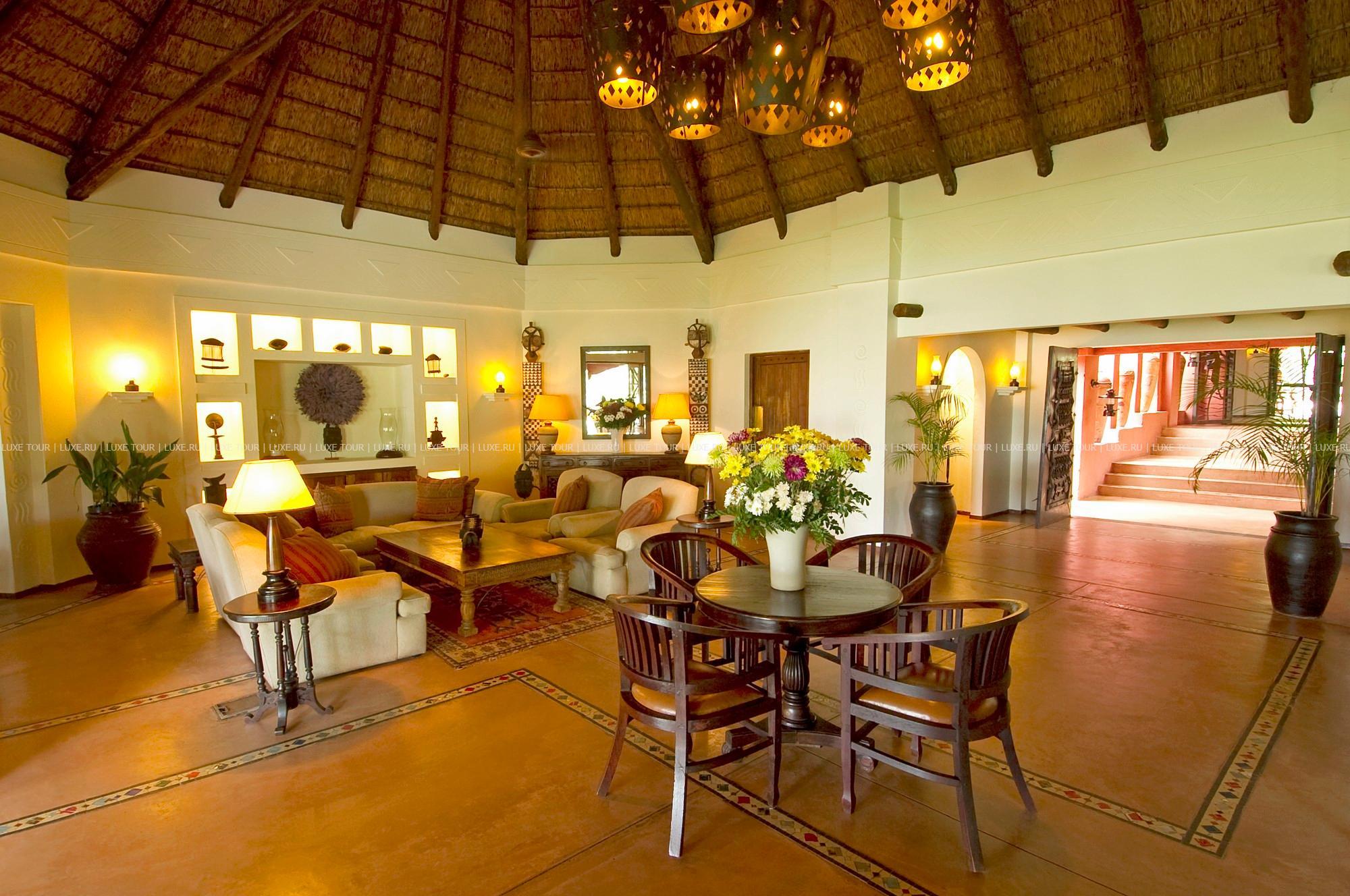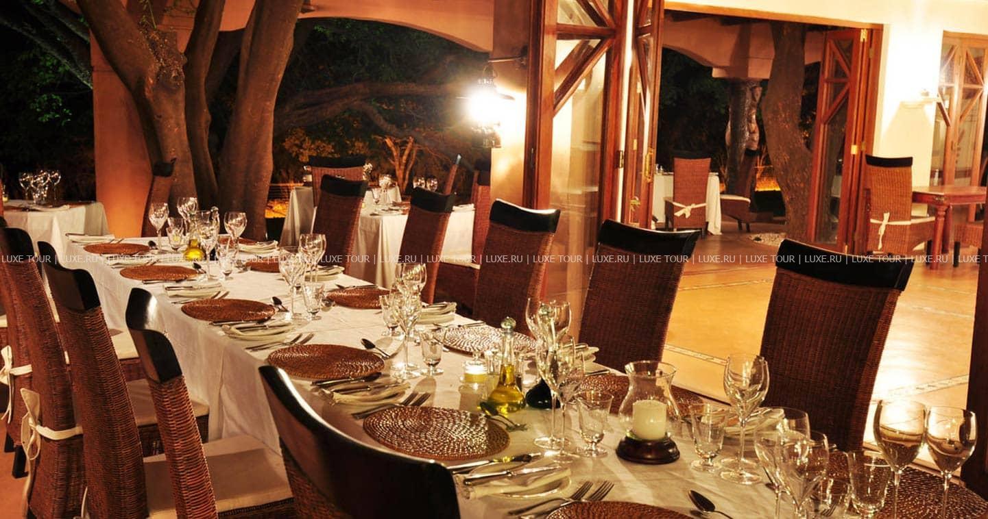 Лодж знаменит своей превосходной кухней от шеф-повара. Лучшие блюда европейской и африканской кухни подаются в общей обеденной комнате, обставленной элегантной резной мебелью из темного дерева и декорированной в национальном африканском стиле.