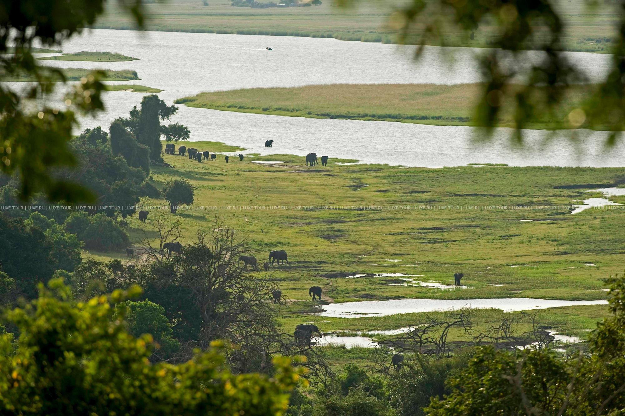 Берег реки Чобе, граница национального парка Чобе, в 10 минутах езды от аэропорта Касане, в 1,5 часах езды от аэропорта Виктория Фоллс.