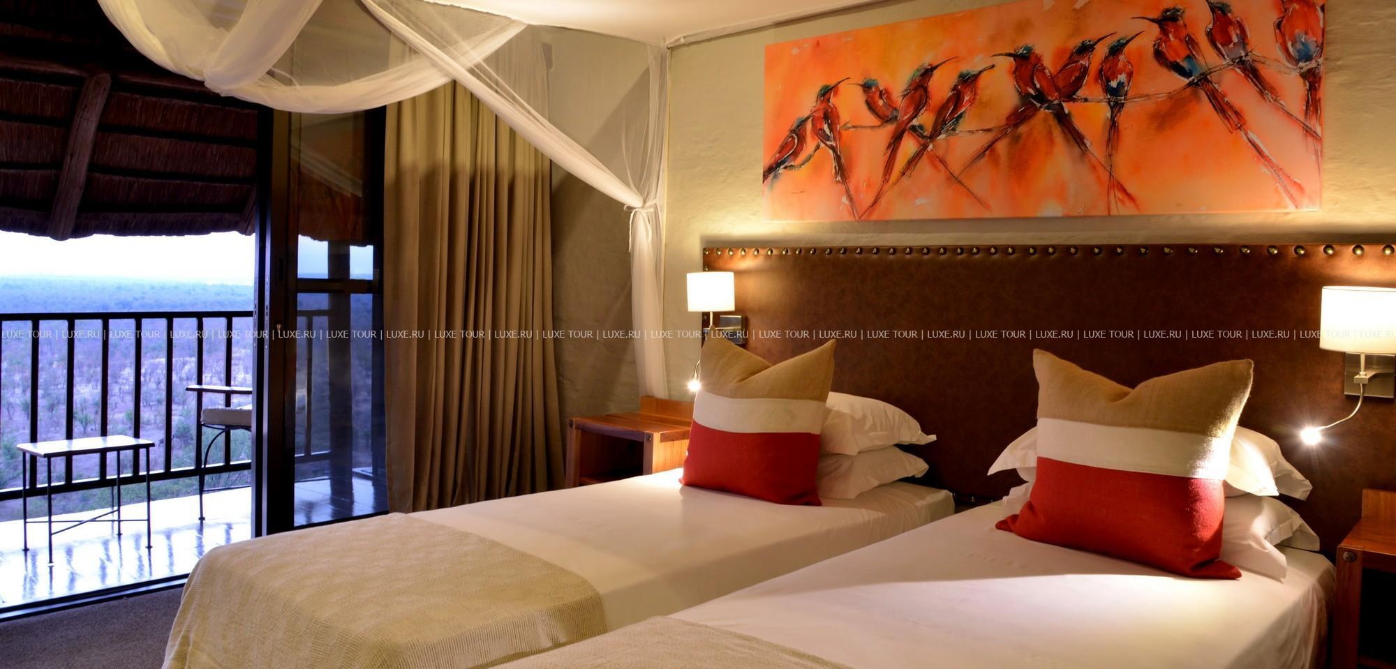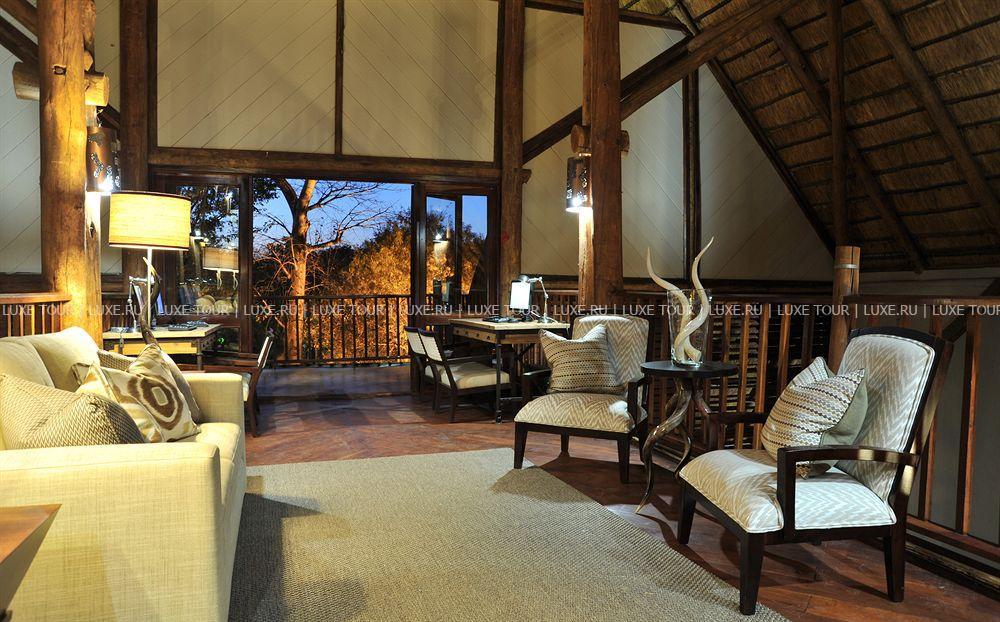 Лодж расположен на плато, являющемся естественной границей Национального парка Замбези. Комплекс зданий построен в окружении природных заповедников Hwange и Chobe, посреди африканского буша, на территории обитания диких животных. Разноуровневое главное здание, построенное в стиле «лесного дома», имеет открытую планировку, окна просторных комнат выходят на противоположные стороны. В лодже есть собственный Центр красоты и здоровья Safari Health & Beauty Spa, предлагающий массажи, процедуры гидротерапии и современные методики по уходу за кожей, к услугам гостей открытый бассейн с террасой для загорания, библиотека, игровая комната, холл со спутниковым телевидением и Интернетом, информационный центр и магазин сувениров, 2 этнических ресторана для гурманов и бар, предлагаются программы для молодоженов и организация свадебных торжеств.