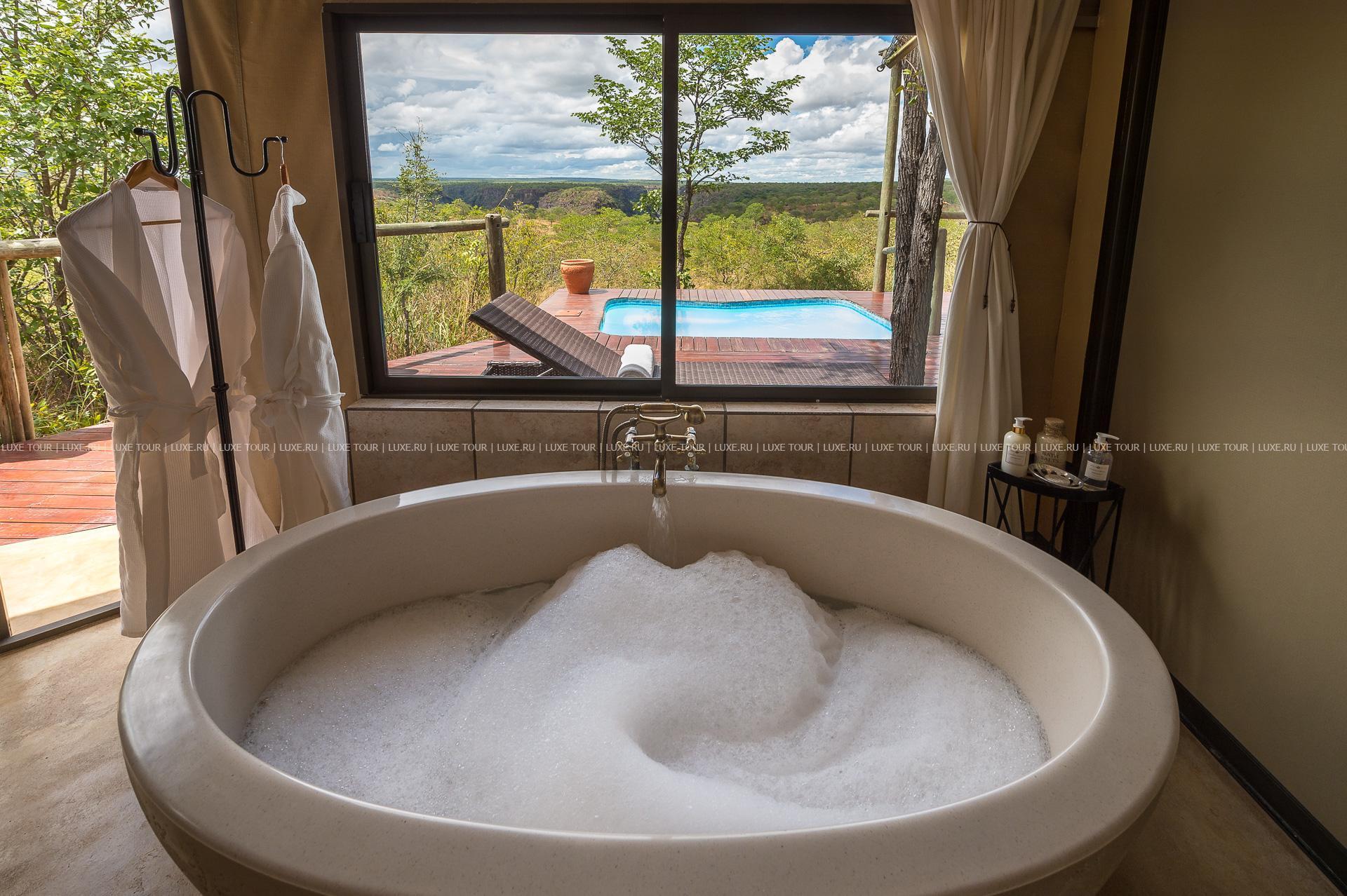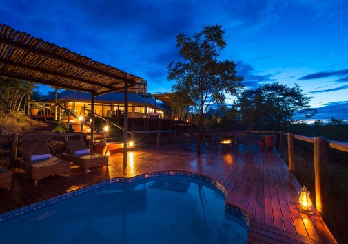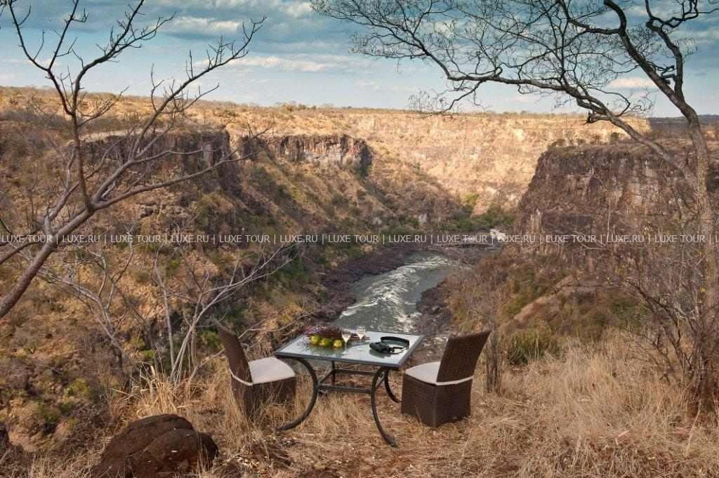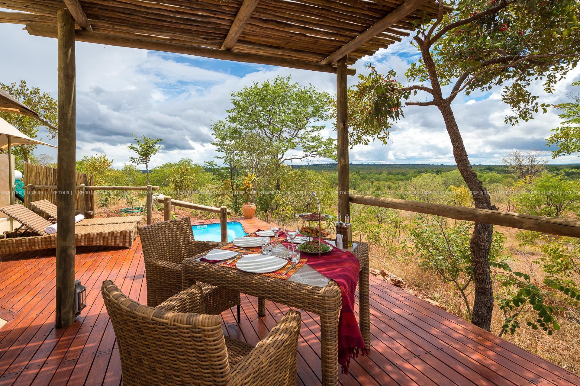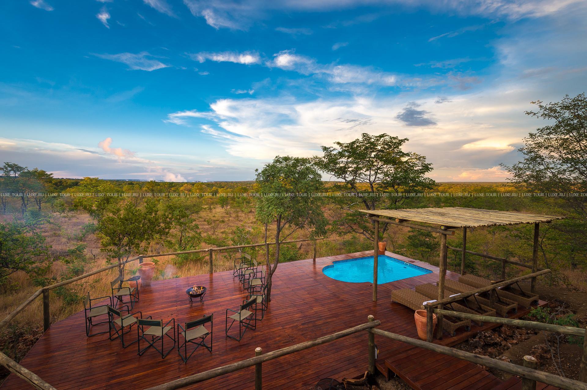 Отель расположен в частном заповеднике дикой природы, в 25 км от водопадов Виктория, в 2 часах перелета от Йоханнесбурга (в аэропорт Виктория-Фоллс).