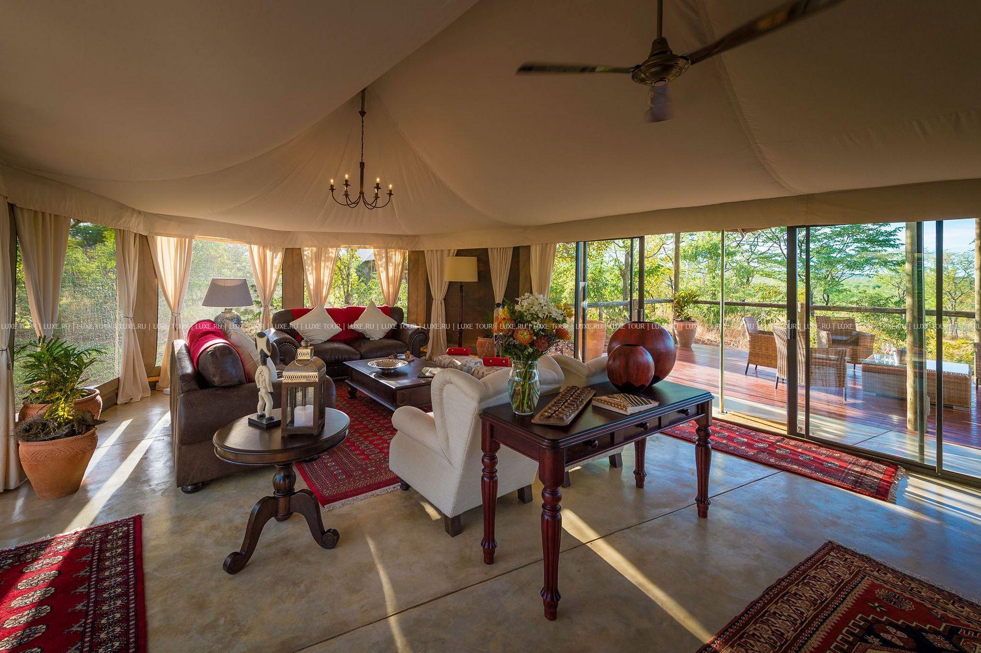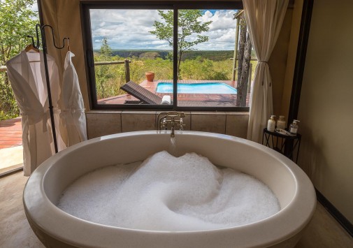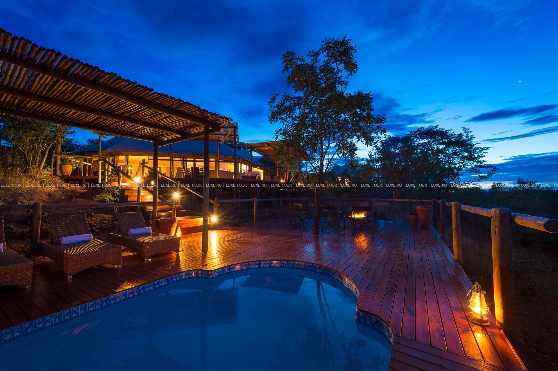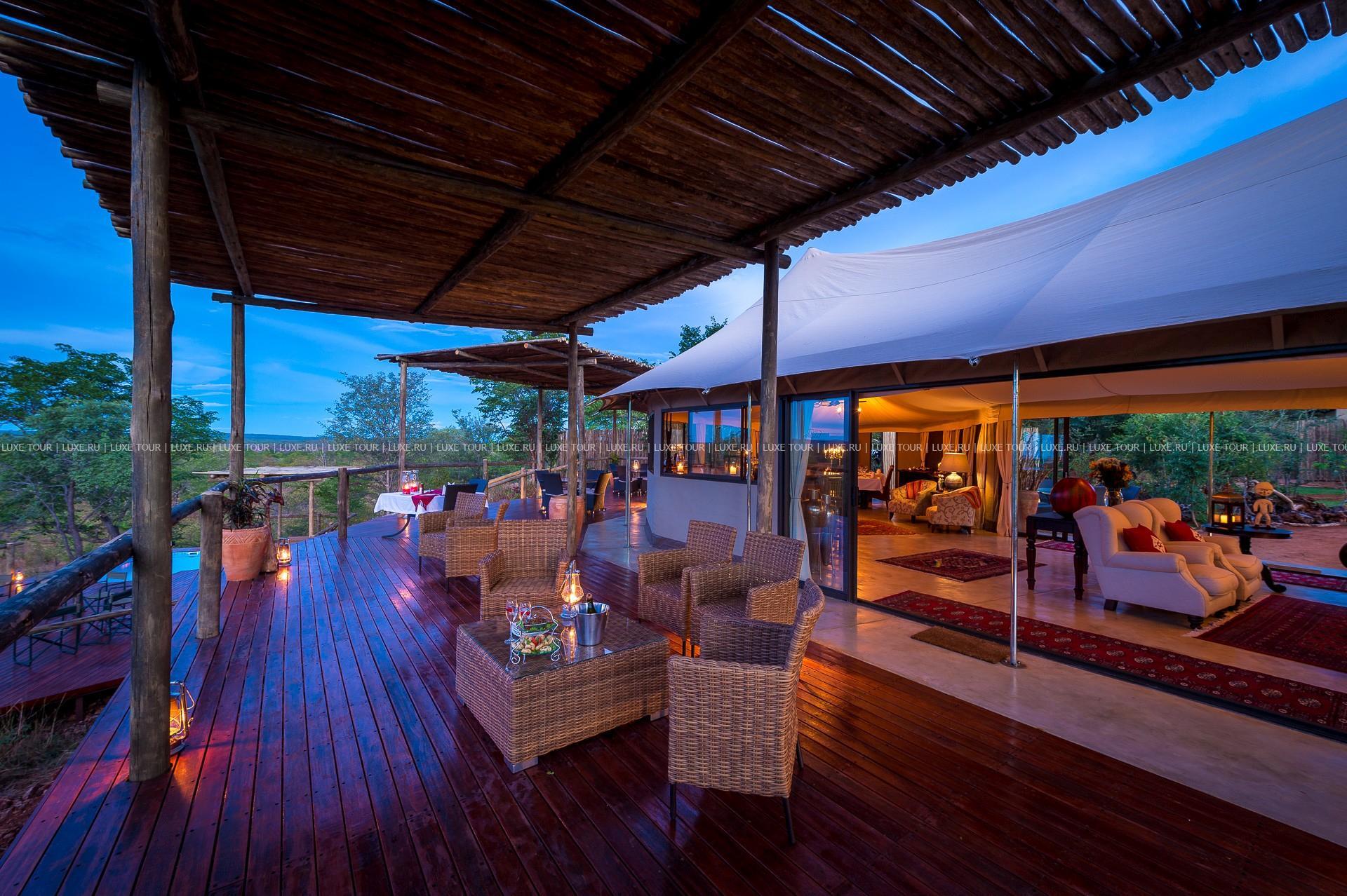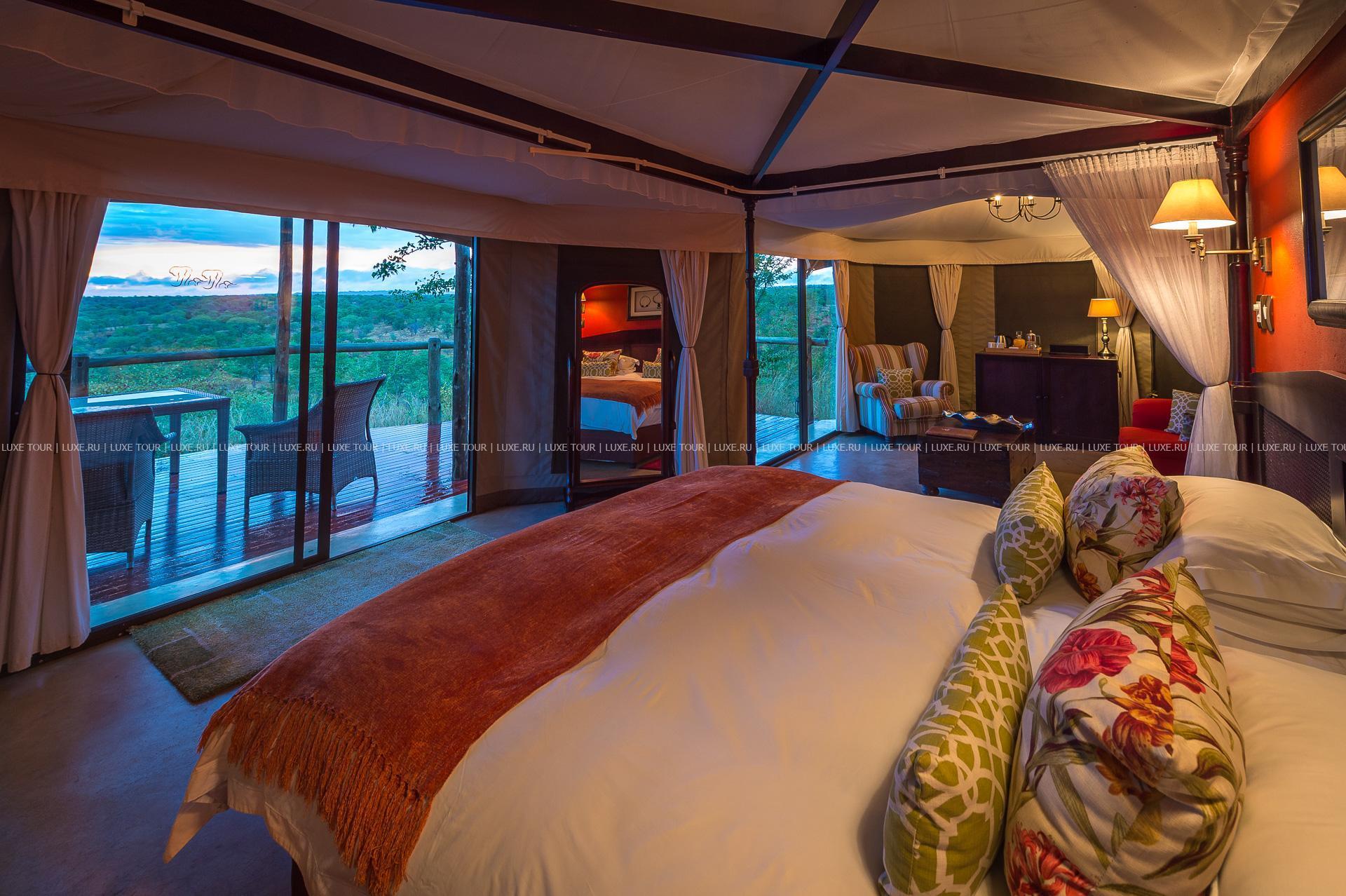 Отель расположен в частном заповеднике дикой природы, в 25 км от водопадов Виктория, в 2 часах перелета от Йоханнесбурга (в аэропорт Виктория-Фоллс).