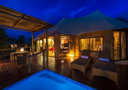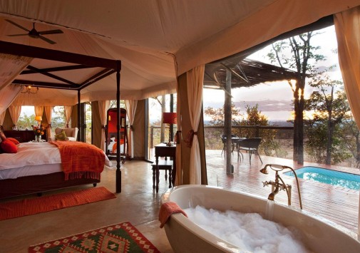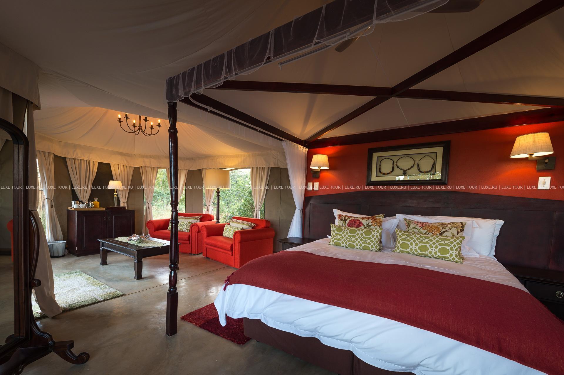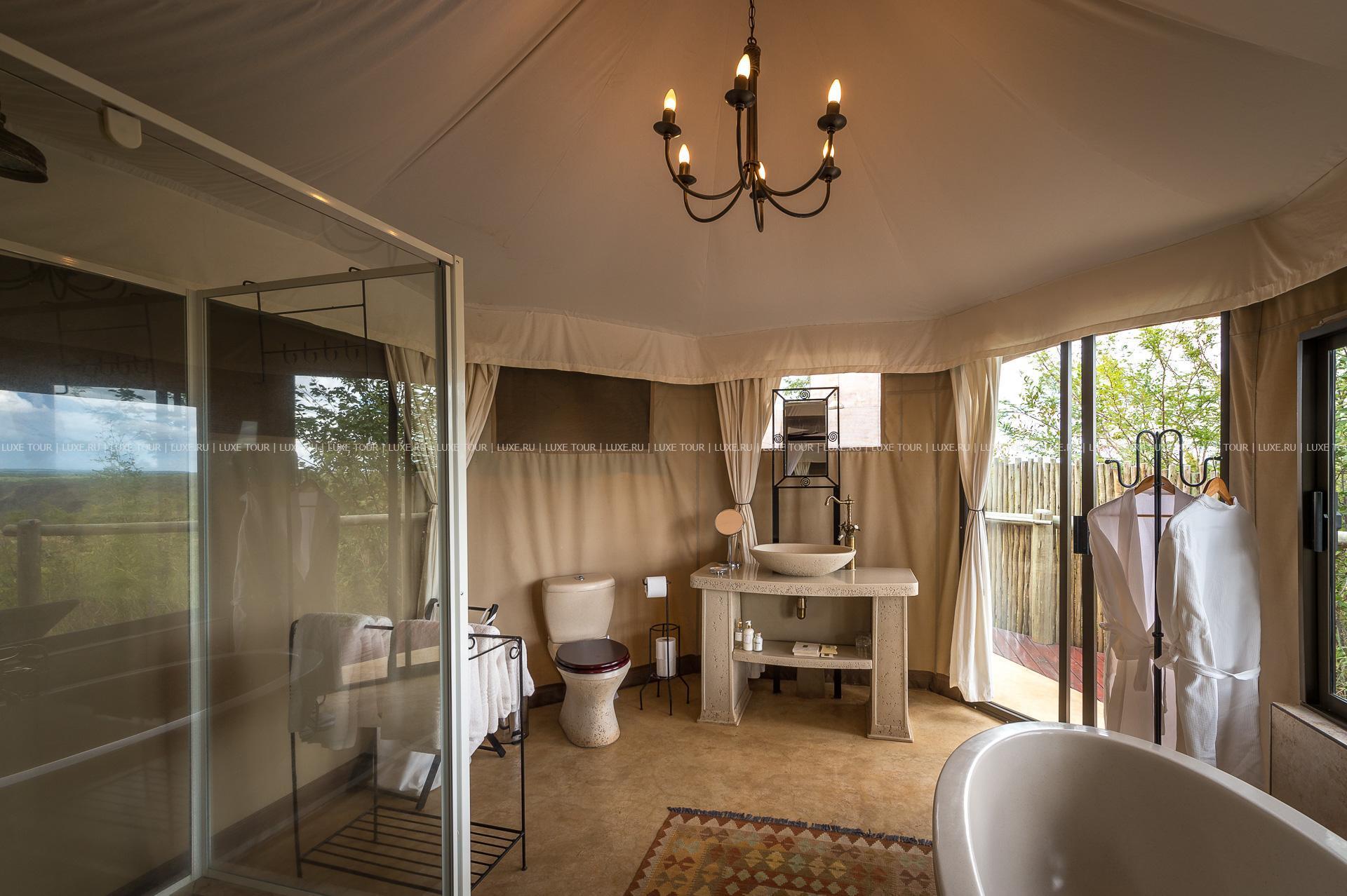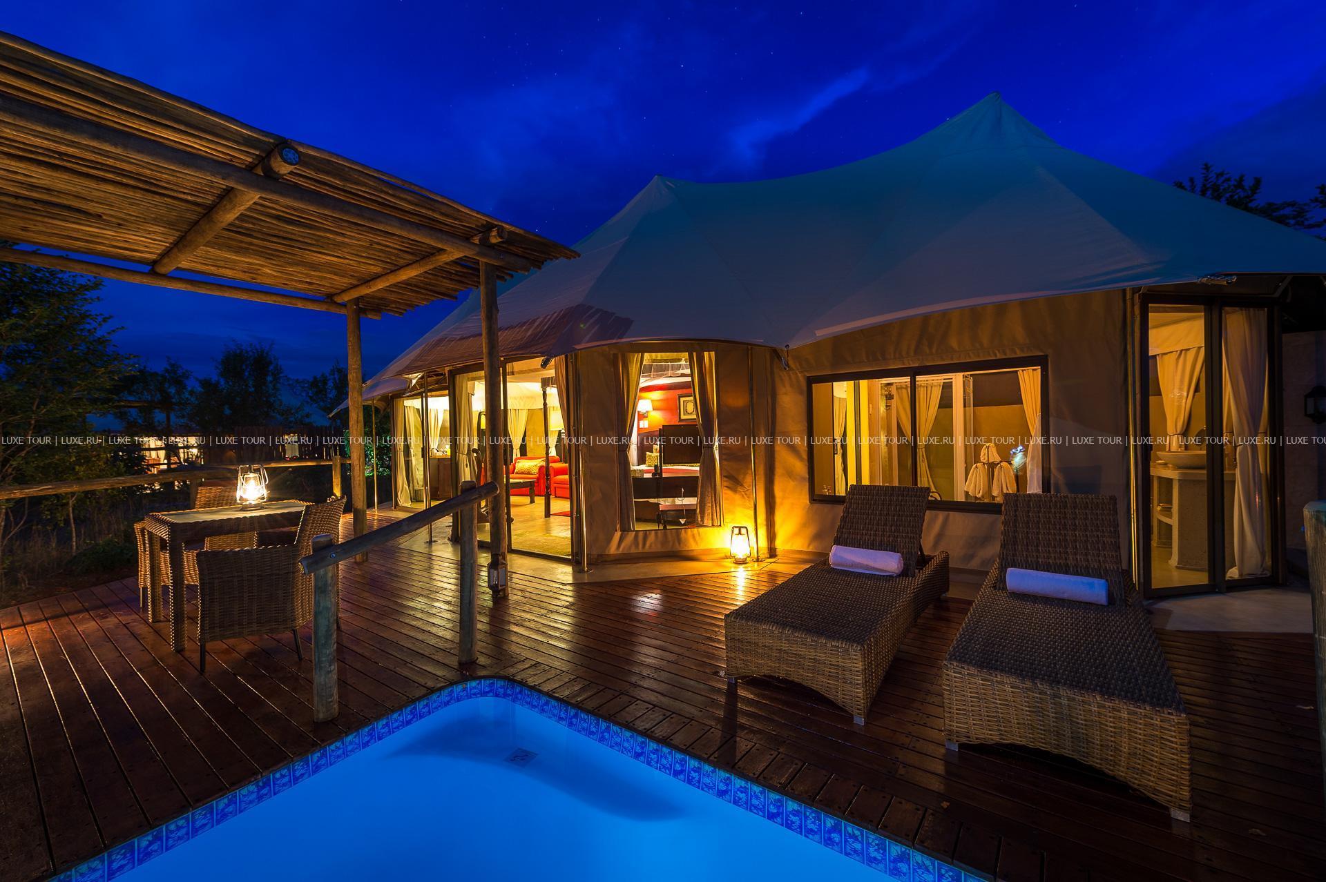 Отель расположен в частном заповеднике дикой природы, в 25 км от водопадов Виктория, в 2 часах перелета от Йоханнесбурга (в аэропорт Виктория-Фоллс).
