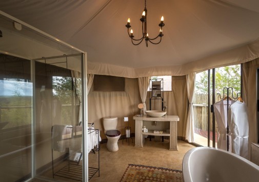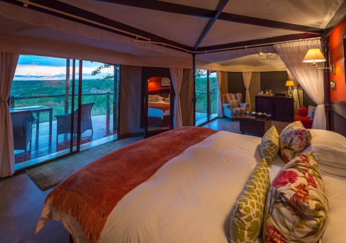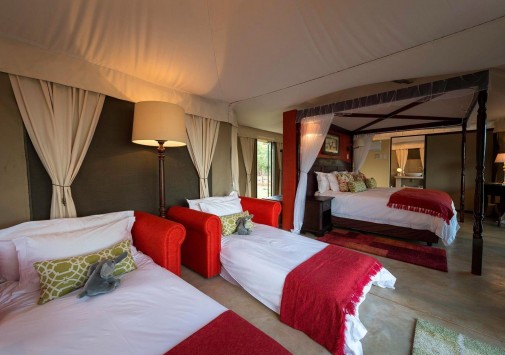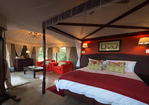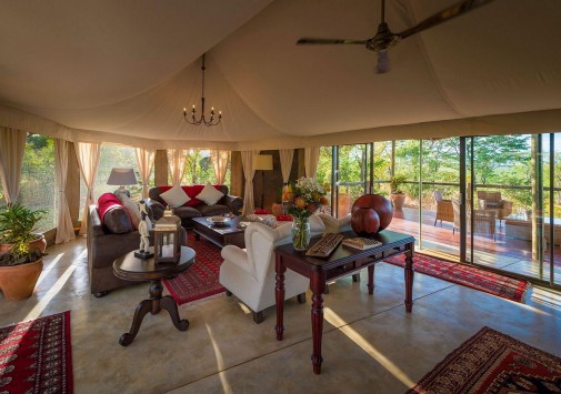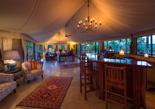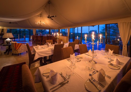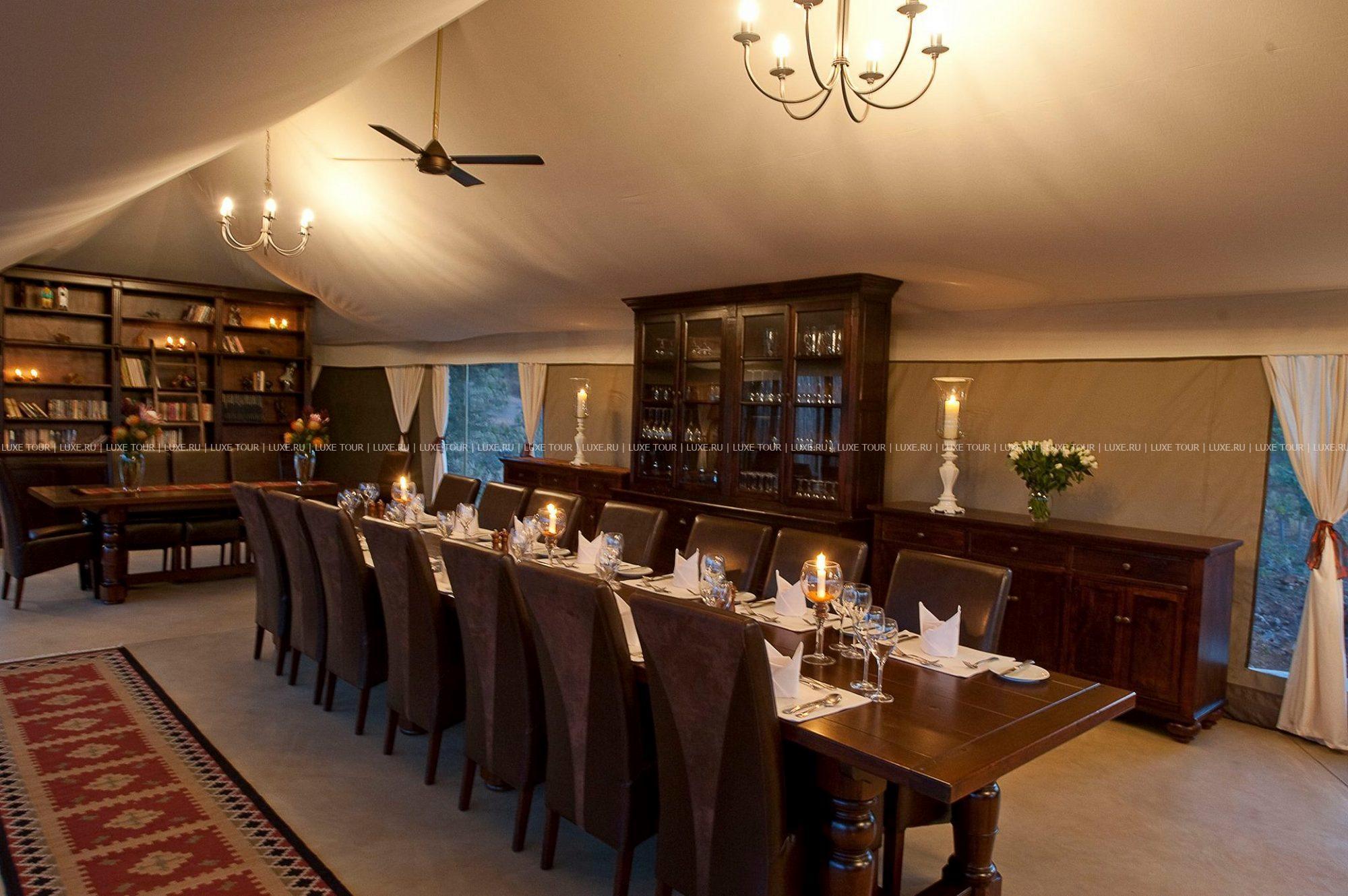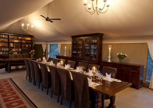 В лодже практикуется трехразовое питание. Возможно приготовление блюд специальному запросу. Завтраки, обеды и ужины сервируют в общей столовой-гостиной с окнами на обе стороны, а также на веранде у бассейна и в крытом соломой дворике «бома» с очагом-кострищем и прекрасным видом на заповедник. Работает бар.