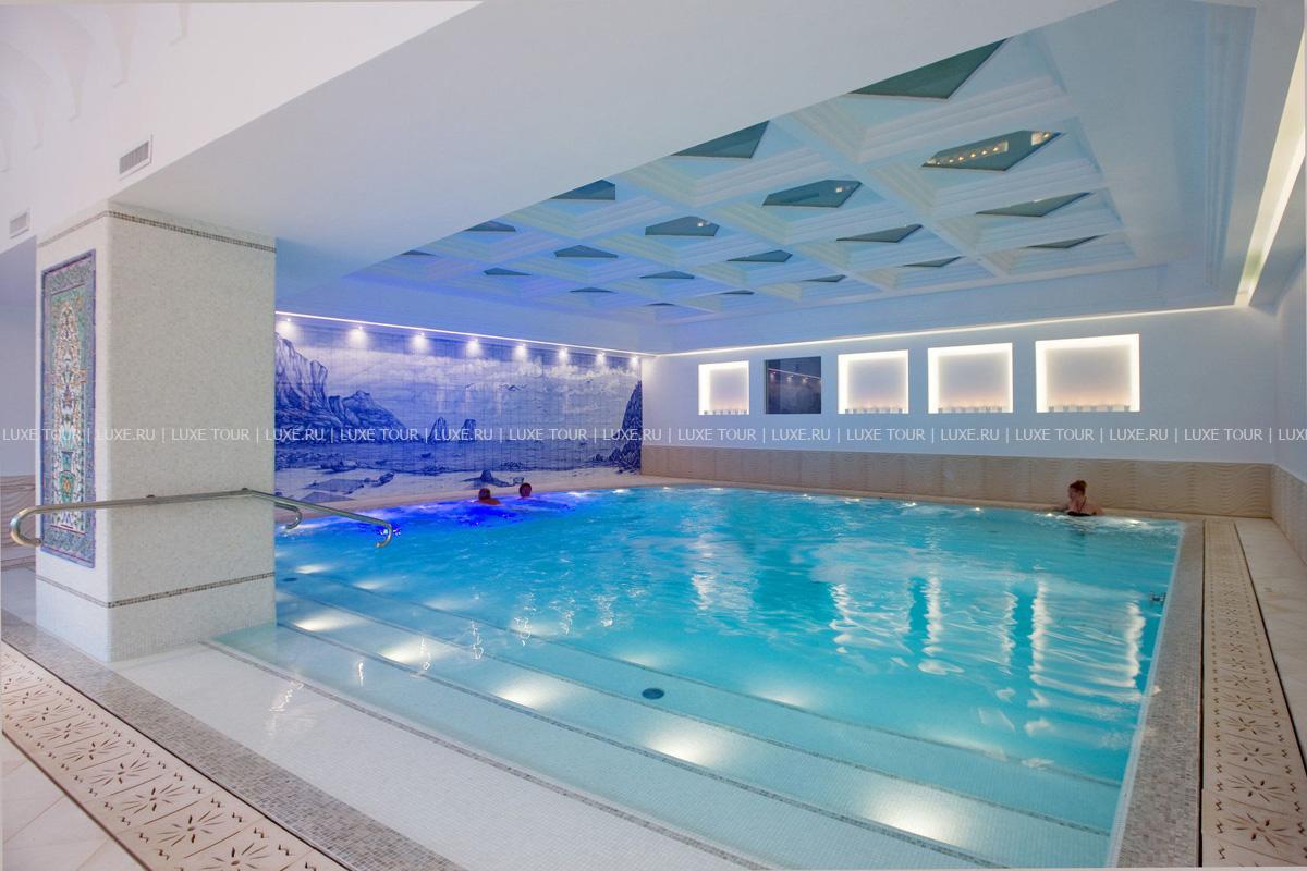 Отель располагает открытым и крытым бассейном.