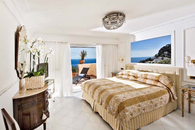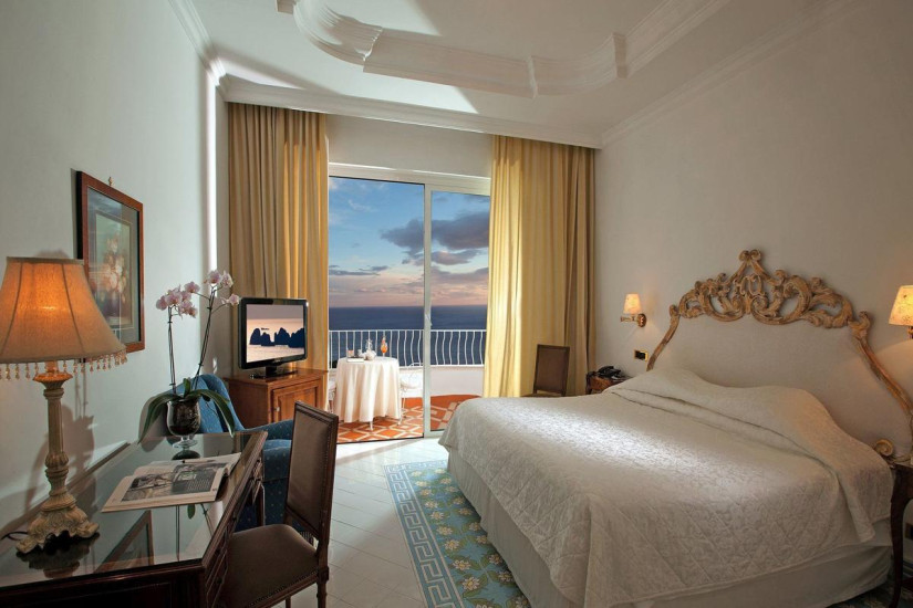 Отель предлагает комфортабельные номера следующих категорий: Standard Rooms, Deluxe Rooms, Special Deluxe Rooms, Junior Suites, Park Suites, Duplex Suites, Special Suites, Special Duplex Suites, Deluxe Suites, Grand Deluxe Suitse, а так же две виллы. Наполненные светом роскошные номера оформлены со средиземноморским изяществом и элегантностью. В декоре преобладают различные оттенки белого (этот цвет является визитной карточкой отеля), так как ярки краски в изобилии представлены в живописных видах Капри, открывающихся из окна.