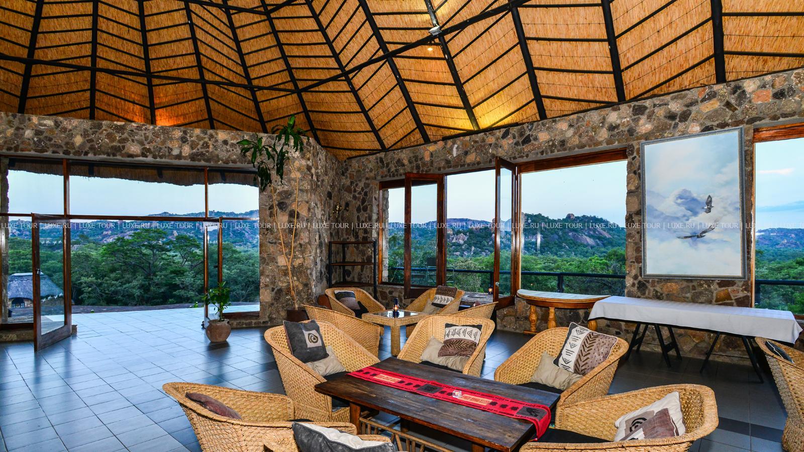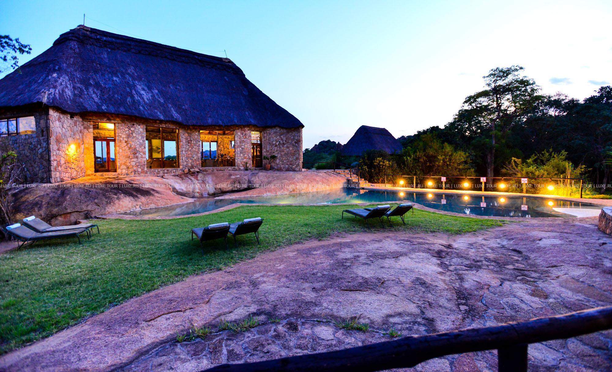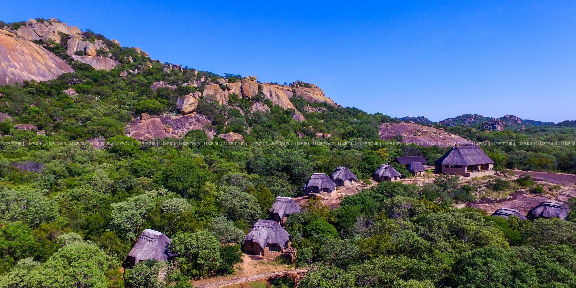Лодж расположен в частном заповеднике дикой природы на границе с Национальным парком Матобо, в 3 часах езды от Хванге. Комплекс зданий построен на гранитном разломе над долиной Малеме в окружении холмов причудливых очертаний и оформлен в африканском стиле. Он состоит из главного здания и отдельных каменных домиков с волнообразной соломенной крышей. Из окон открываются панорамные виды на окружающие лодж гранитные холмы. Окрестности знамениты пещерами с наскальными рисунками, на холмах Матобо обитают большие популяции белых и черных носорогов, леопардов и черных орлов, а также антилопы и бабуины. В лодже есть магазин сувениров, открытый бассейн, высеченный в гранитной скале и имитирующий природный водоем, конференц-залы (обшей вместимостью до 40 гостей), обеденный зал с открытой верандой и гостиная-бар с круговой панорамой. Предлагаются программы для молодоженов.