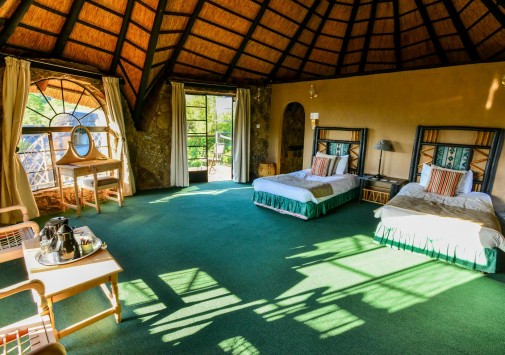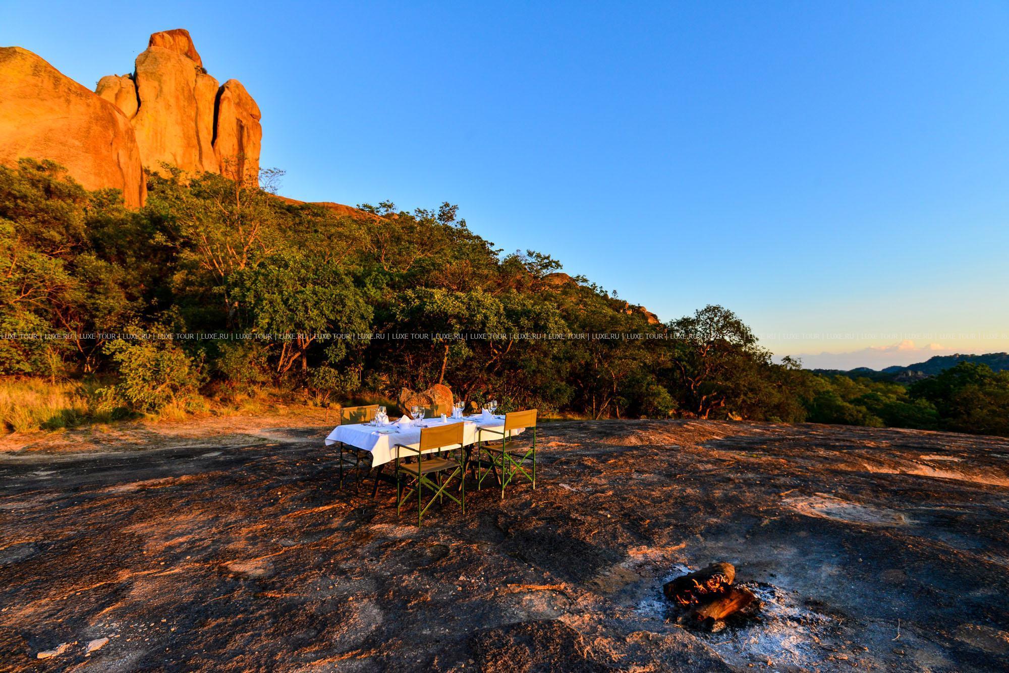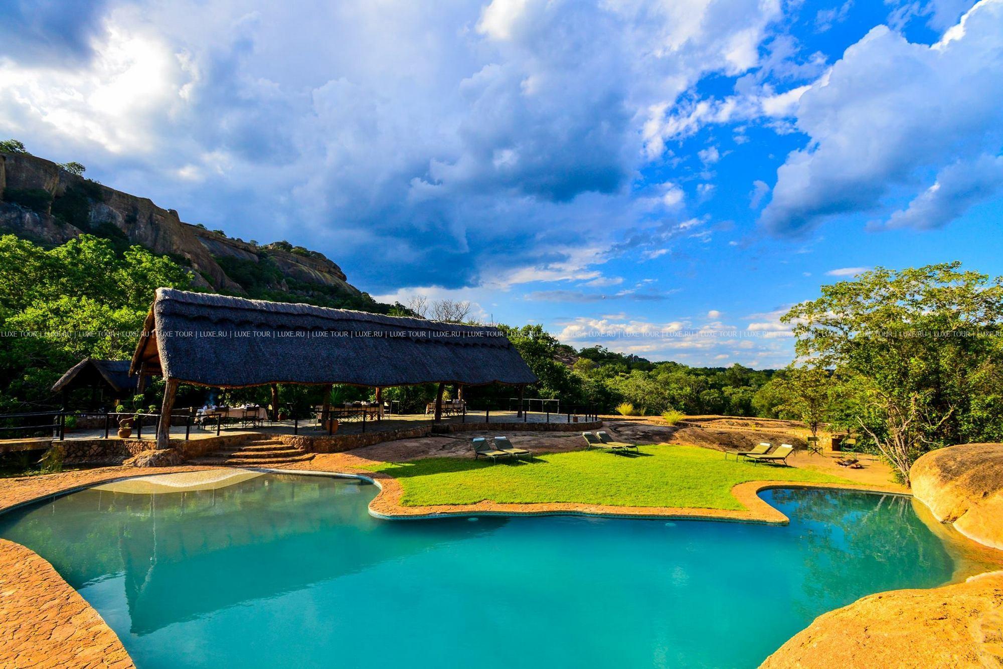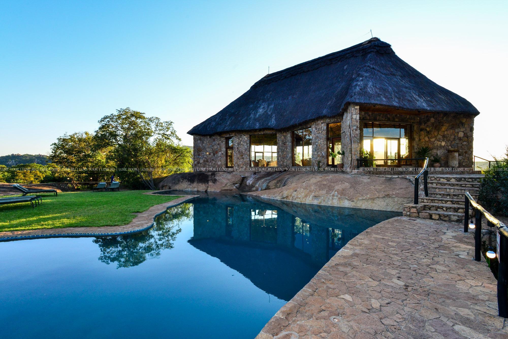 Лодж расположен в частном заповеднике дикой природы на границе с Национальным парком Матобо, в 3 часах езды от Хванге. Комплекс зданий построен на гранитном разломе над долиной Малеме в окружении холмов причудливых очертаний и оформлен в африканском стиле. Он состоит из главного здания и отдельных каменных домиков с волнообразной соломенной крышей. Из окон открываются панорамные виды на окружающие лодж гранитные холмы. Окрестности знамениты пещерами с наскальными рисунками, на холмах Матобо обитают большие популяции белых и черных носорогов, леопардов и черных орлов, а также антилопы и бабуины. В лодже есть магазин сувениров, открытый бассейн, высеченный в гранитной скале и имитирующий природный водоем, конференц-залы (обшей вместимостью до 40 гостей), обеденный зал с открытой верандой и гостиная-бар с круговой панорамой. Предлагаются программы для молодоженов.