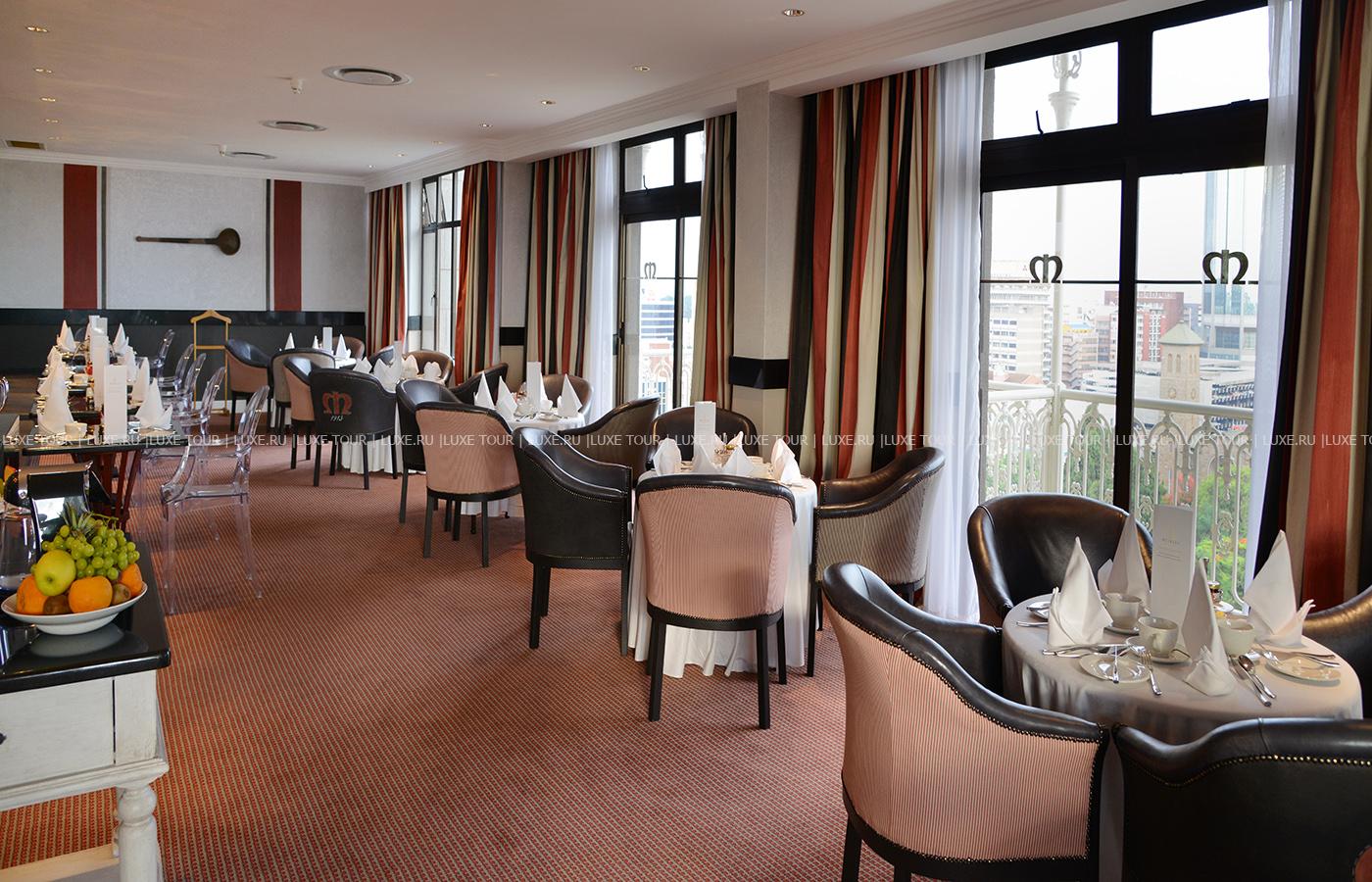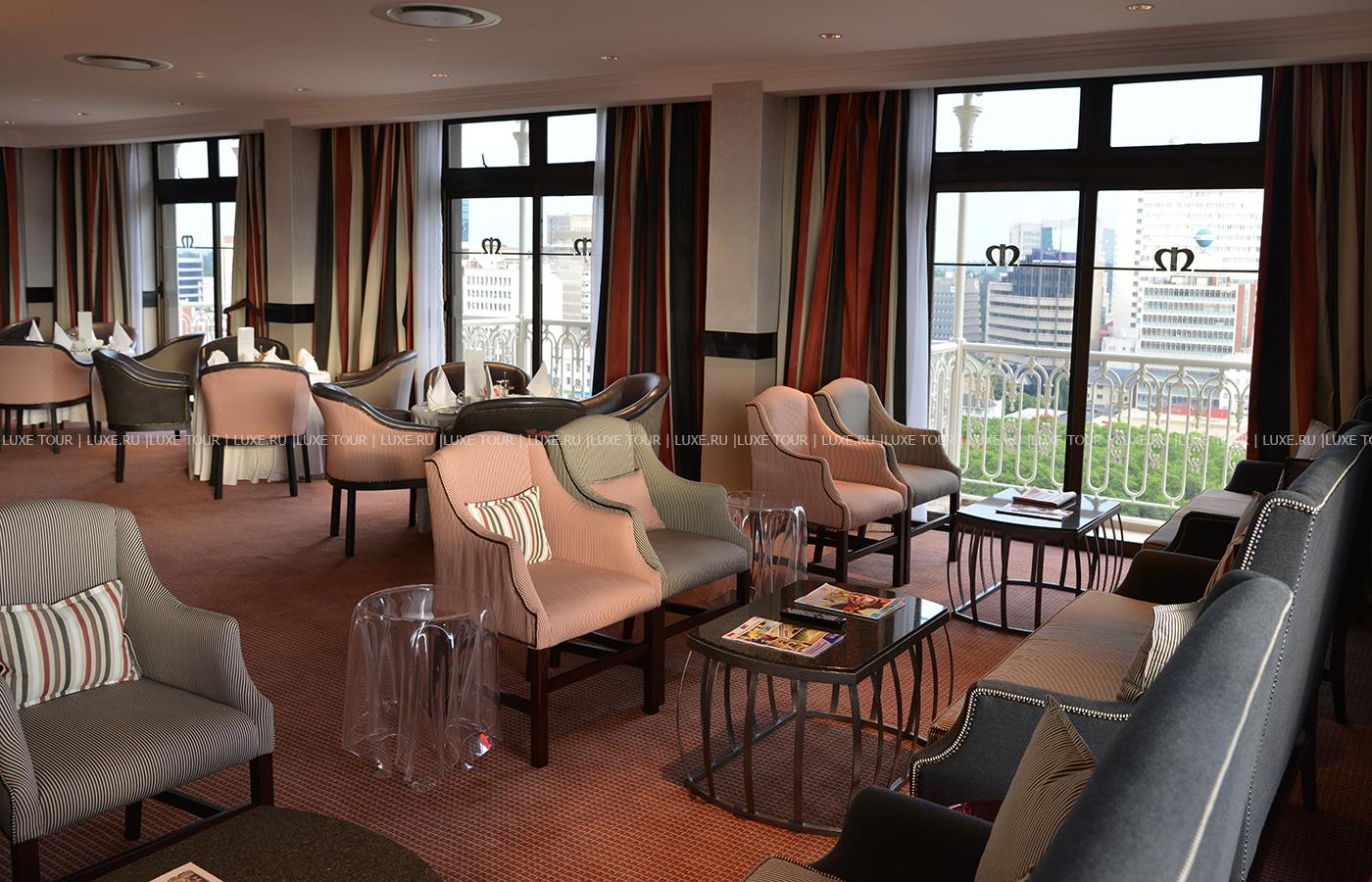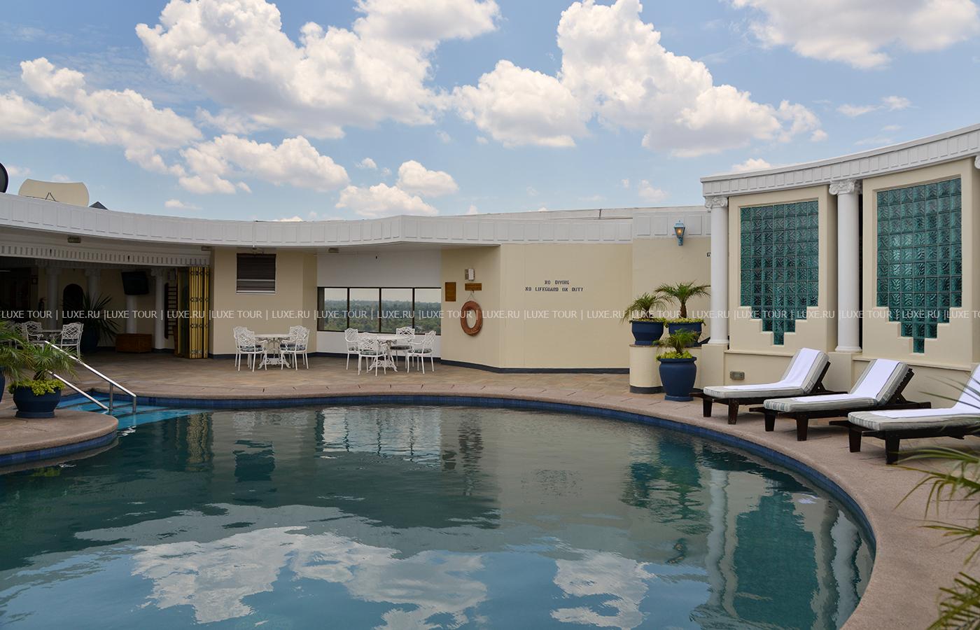 - Работают бары: элегантная чайная гостиная Tea Lounge, популярный в Хараре бар Out of Africa и бар при бассейне, где подают легкие закуски, а также клубный бар.