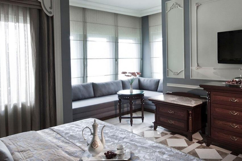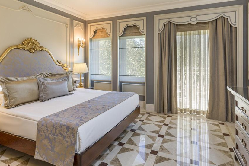- В отеле номера различных категорий, которые расположены в элегантных зданиях, построенных в стиле турецких вилл XVI-XVII веков, и декорированы с изысканной роскошью: мраморные полы, великолепный текстиль, элегантная мебель, украшенная резьбой, старинные репродукции на стенах.