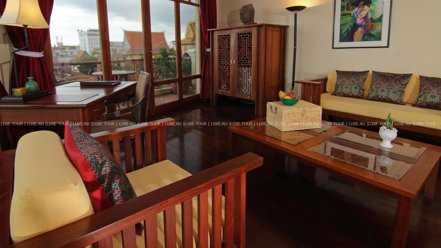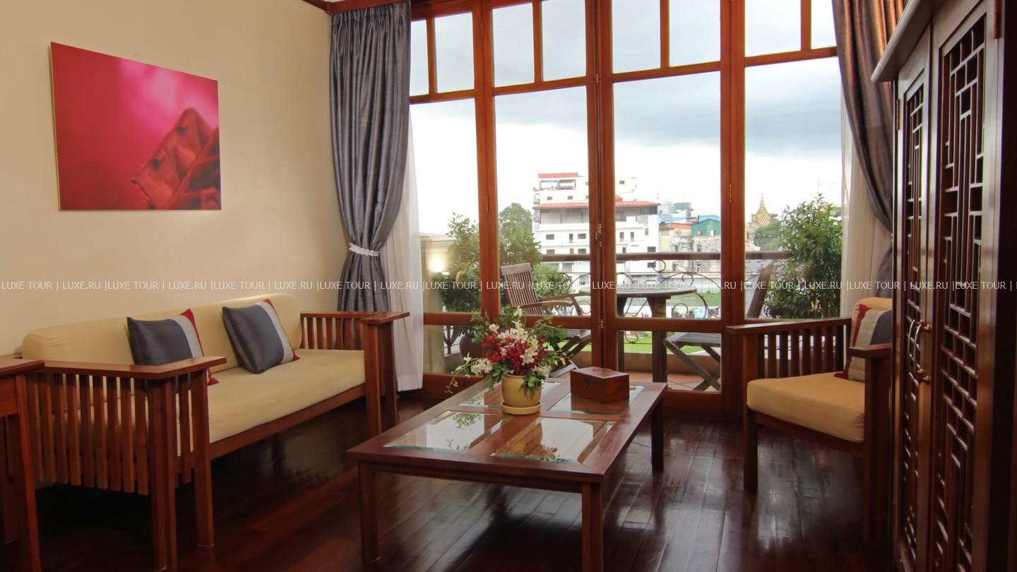 Все номера декорированы в традиционном кхмерском стиле, с использованием дерева и шелковых тканей высокого качества, мебель выполнена из розового дерева, а паркет из тика. К услугам гостей - SPA и фитнес-центр, ресторан, сервирующие традиционную кхмерскую кухню, все условия для проведения бизнес-встреч.