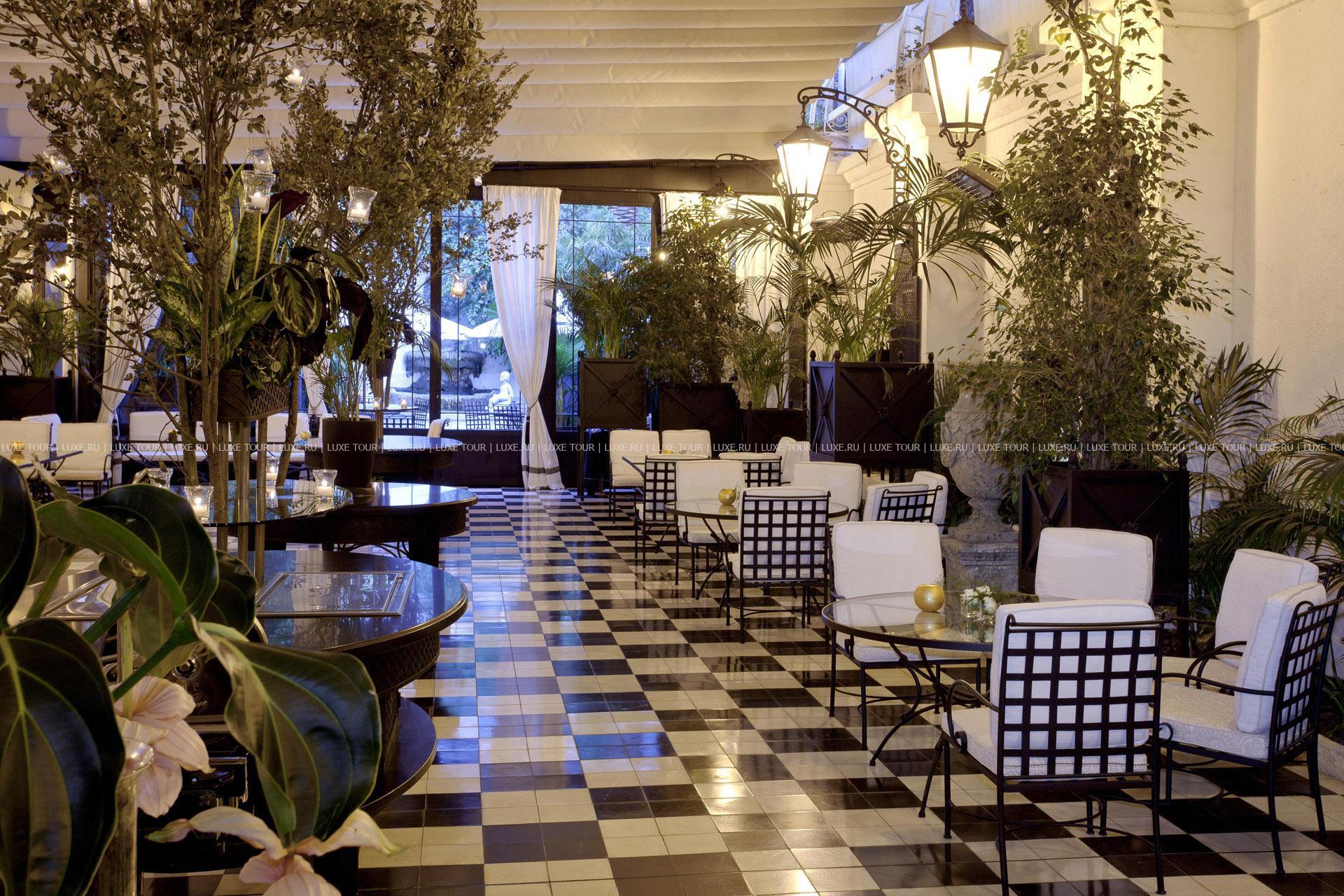 • Ресторан Winter Garden. Кованая мебель антикварного дизайна, бамбуковые стулья в стиле начального периода существования отеля. К этому можно добавить дегустационное меню и выбор отличных блюд средиземноморской кухни из местных продуктов.
