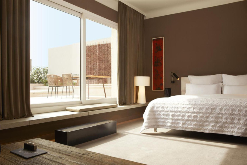 - 60 м2 + терраса 40 м2. Элегантный номер с оригинальным современным декором состоит из спальни с кроватью king-size, просторной гостиной зоны, рабочей зоны, ванной комнаты с подогреваемым полом с ванной и душем, террасы с «тропическим» душем, обеденной зоной, зоной отдыха и великолепным панорамным видом на город. Максимальное размещение – 2 человека.