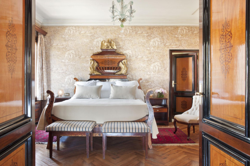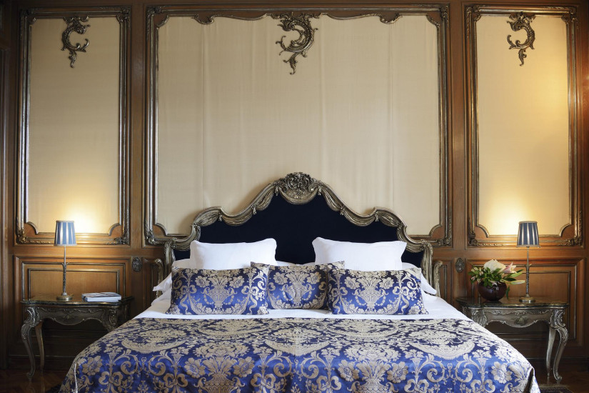 - 80 м2. Роскошный номер, оформленный в стиле Людовика XV, имеет в интерьере отделку из благородного дерева и натурального шелка, антикварные произведения искусства, севрский фарфор. Состоит из просторной гостиной, спальни с кроватью king-size, гардеробной, ванной комнаты, гостевой ванной комнаты, террасы с видом на море. Максимальное размещение - 2 взрослых + 2 ребенка.