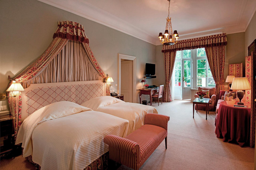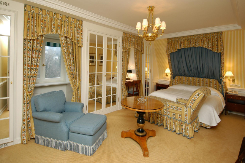 - фешенебельный номер с отдельным входом и видом на парк располагается на 1 этаже и состоит из двух спален, просторной гостиной, ванной комнаты, гостевой комнаты для ребенка или личного персонала, террасы с выходов в сад и видом на парк отеля. Дополнительно в номере – система Bang & Olufsen.