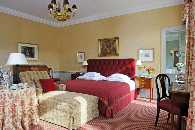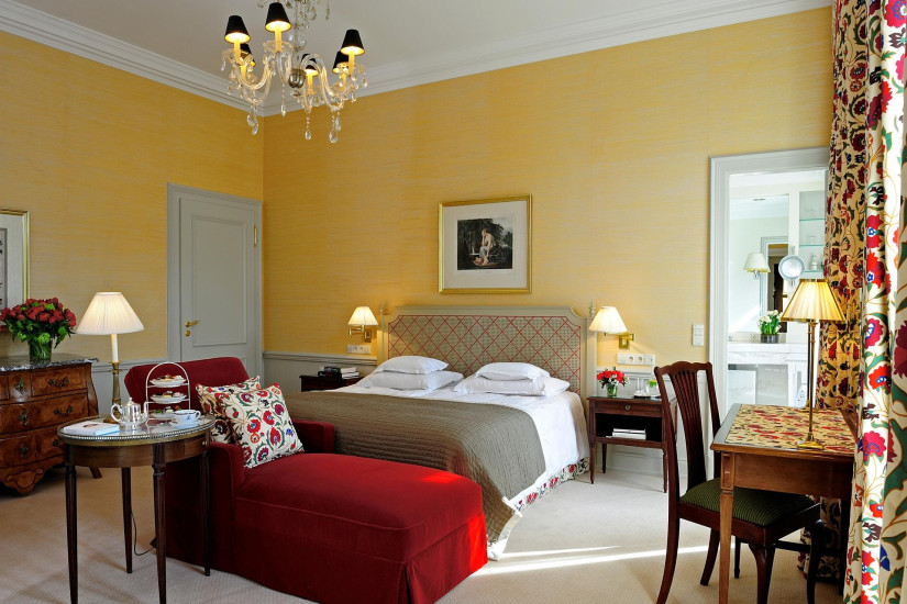 - 200 м2. Роскошный номер на верхнем этаже виллы состоит из двух спален с собственными ванными комнатами, просторной гостиную с камином, гардеробной, TV-комнаты с системой Bang & Olufsen, которая может использоваться как столовая или переговорная комната, двух балконов с чудесным видом на Лихтентальскую аллею.