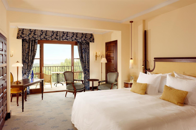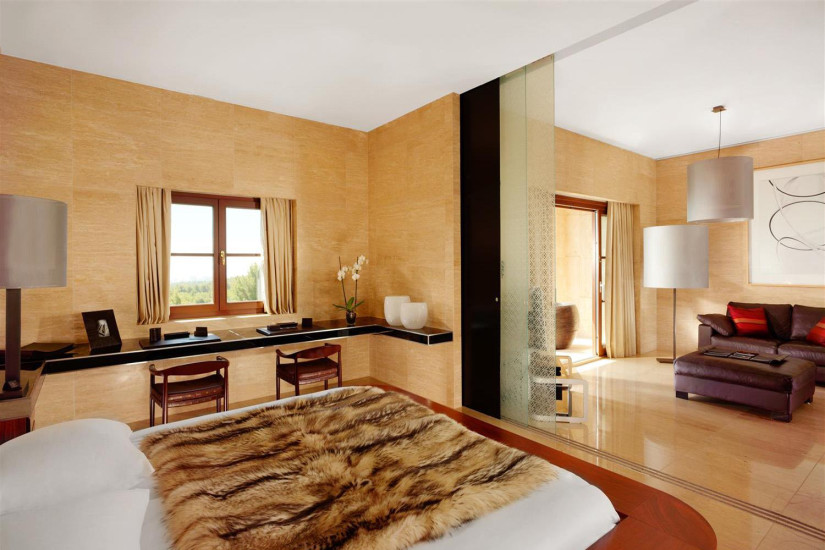 - 132 м2. Роскошный номер состоит из спальни, просторной гостиной, гардеробной, ванной комнаты, гостевой ванной комнаты, просторной террасы с панорамным видом на залив и живописные гольф-поля Son Vida и Son Muntane. Номер может соединяться с Grand Deluxe Room. Максимальное размещение — 2 взрослых + 1 ребенок.