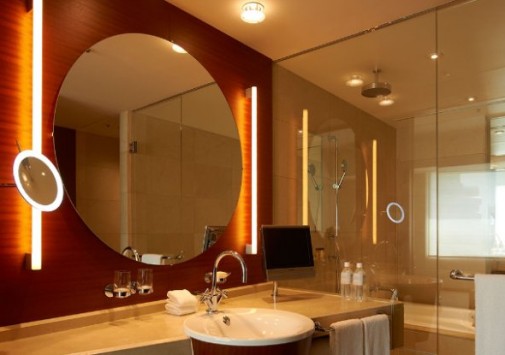 Номера-люкс оформлены в стиле модерн, декорированы натуральными тканями и деревом, ванные комнаты облицованы известняком и располагают глубокими ваннами.