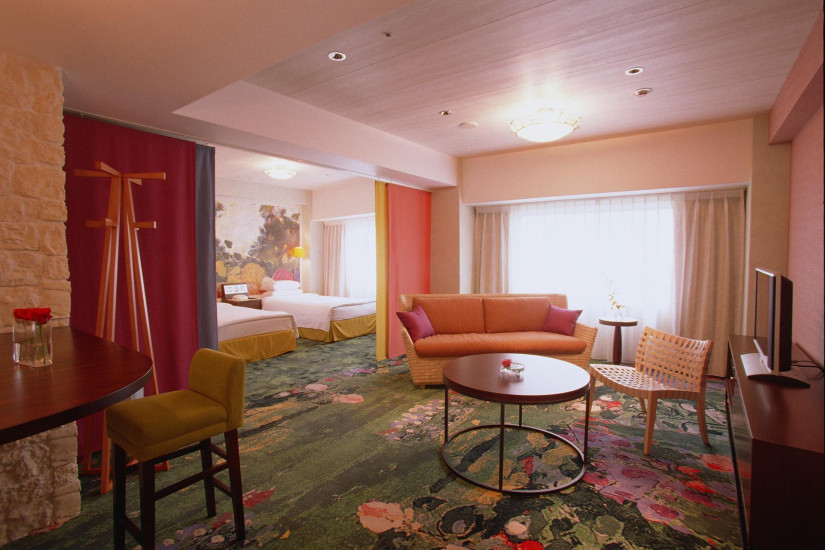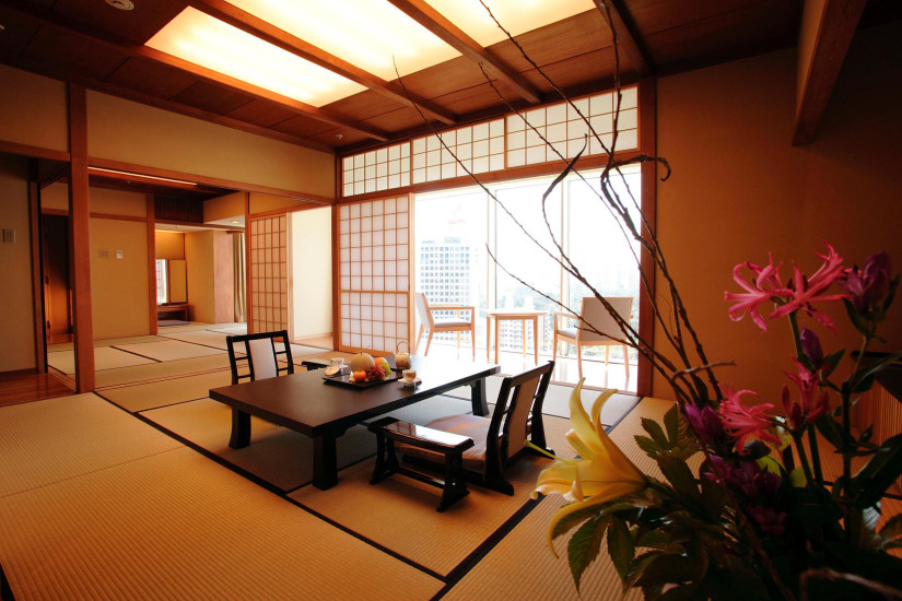 - 52-80 м2. Номер в японском стиле состоит из спальни, гостиной с раздвижнымии дверьми, ванной комнаты, небольшой лоджии с видом на город.