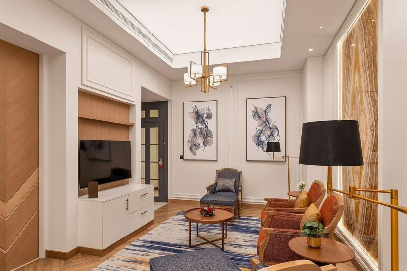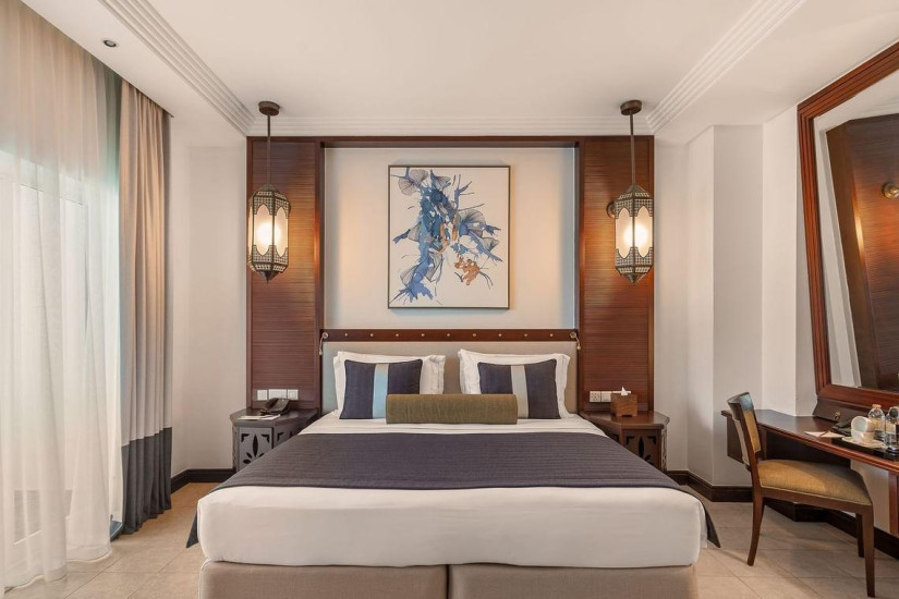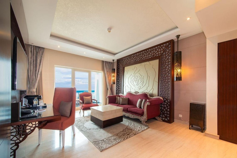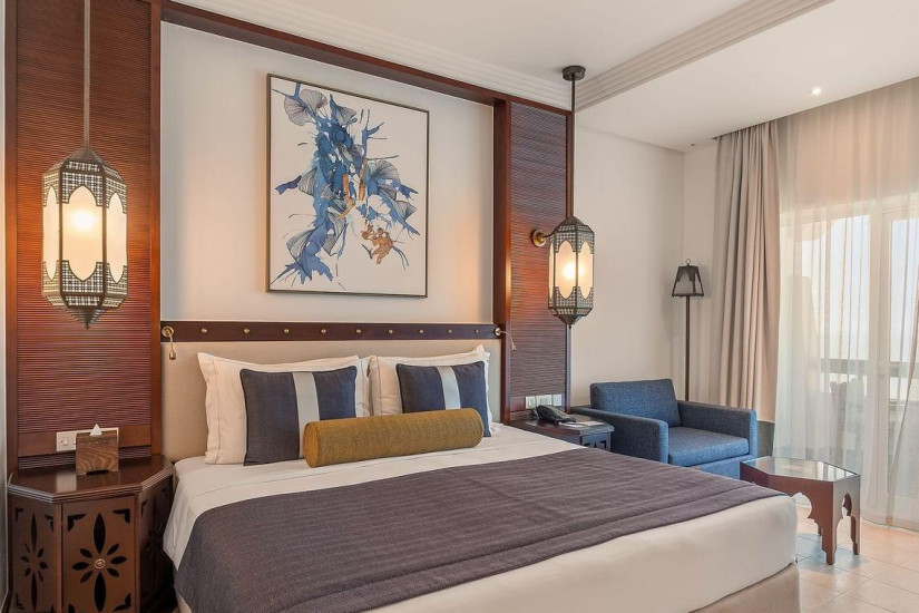 - В отеле комфортабельные номера и виллы различных категорий. В номерах – элегантные интерьеры в теплых тонах, сочетающие современный стиль и арабские мотивы, с изысканными украшениями, уютными балконами и террасами с прекрасным видом на море и окружающие ландшафты.