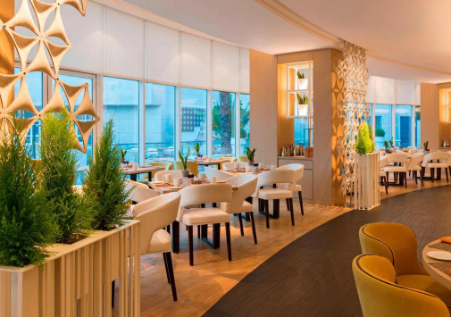 • Stratos Revolving Lounge Bar & Grill – вращающийся стейк-хаус, предлагает изысканные блюда на фирменном гриле и коктейли.