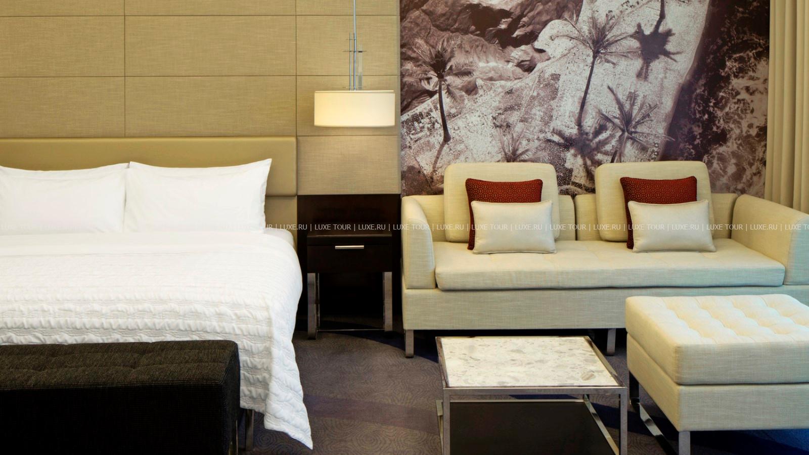 Белоснежное, сверкающее стеклами окон, здание Le Méridien Al Aqah Beach Resort, очерченное четкими линиями, отражающими тенденции современной архитектуры, расположилось на фоне величественных склонов гор Хаджар (Hajar), у широкого песчаного пляжа, омываемого лазурными водами Индийского океана, среди ухоженных изумрудных лужаек и раскидистых пальм. В комфортабельных номерах – элегантные интерьеры в теплых тонах, с ковровым покрытием на полах, изящной мебелью, тщательно подобранными элементами декора, балконами и террасами с чудесным видом на Оманский залив и окружающие ландшафты. В отеле открыт Оздоровительный/СПА Центр, включающий тренажерный зал, сауну, парную и процедурные кабинеты, предлагающие большой выбор услуг по уходу за здоровьем и внешностью. На территории Le Méridien Al Aqah Beach Resort находятся: открытые бассейны – лагуны, теннисные корты, центр водных видов спорта, дайвинг-центр, столы для настольного тенниса и бильярда, предлагаются занятия аэробикой, рыбалка, джип-сафари, работает анимация.