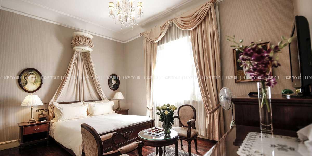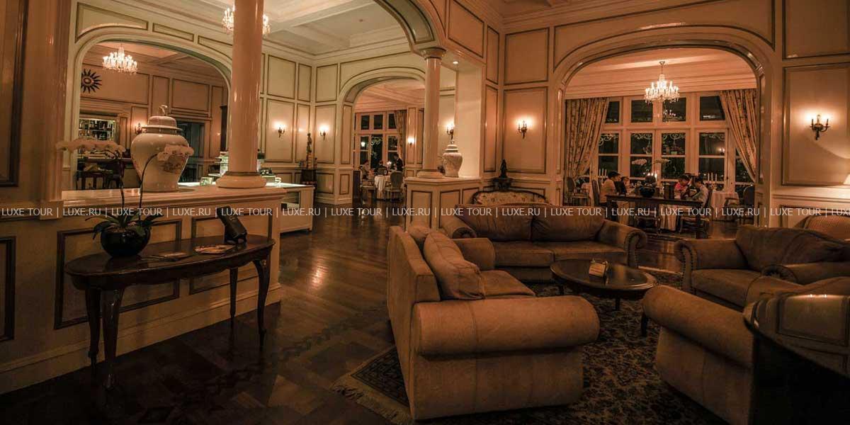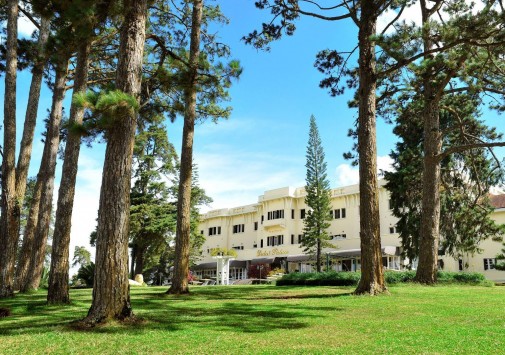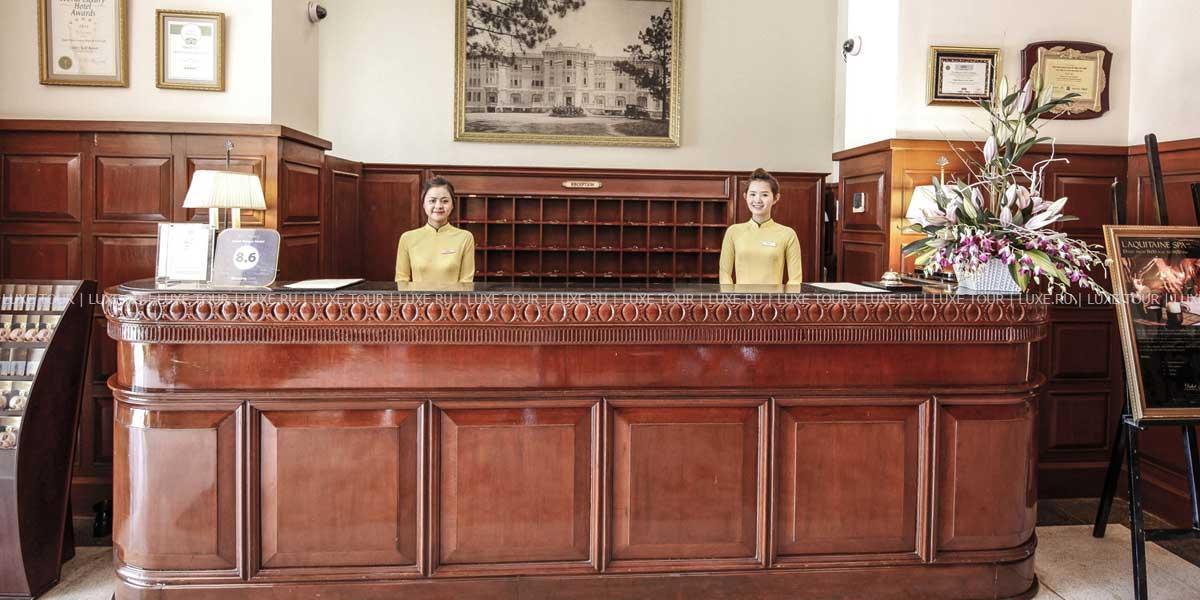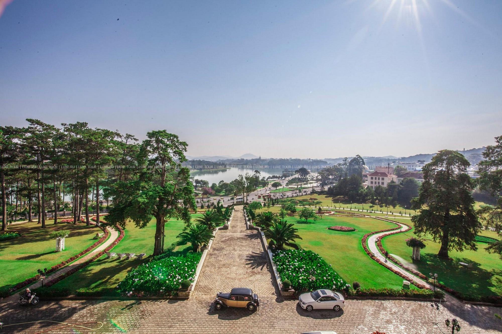 Отель Dalat Palace Luxury Hotel расположен в центре Далата на высоте 1500 м над уровнем моря в 30 км езды от аэропорта, рядом с озером Сюан Хыонг. Белоснежное здание гостиницы, построенное во французском колониальном стиле в 1922 году, утопает в зелени старинного роскошного парка. Высоченные сосны, яркие кустарники, просторные изумрудные лужайки и разбегающиеся дорожки придают особенное очарование торжественной лестнице парадного входа, уютным балкончикам и декоративным колоннам, моделирующим здание в соответствии с особенностями местного стиля. Один из самых красивых и престижных отелей Юго-Восточной Азии, Dalat Palace Luxury Hotel, в 1995 году был полностью отреставрирован и вернул свое былое величие, воскрешающее шарм и художественную манеру 20-х годов прошлого века. При реконструкции главный акцент был сделан на сохранение французского колониального стиля, уникальной архитектуры и художественного оформления. Из окон отеля открывается прекрасный вид на Далат, берег озера Сюан Хыонг и лужайку, где регулярно проводятся свадебные церемонии пар из высшего света Вьетнама. Отель предлагает 43 прекрасно декорированных номера с роскошными ванными комнатами. Интерьеры номеров и ресторанов щедро украшены живописью, скульптурой и восточными коврами из огромной коллекции отеля.