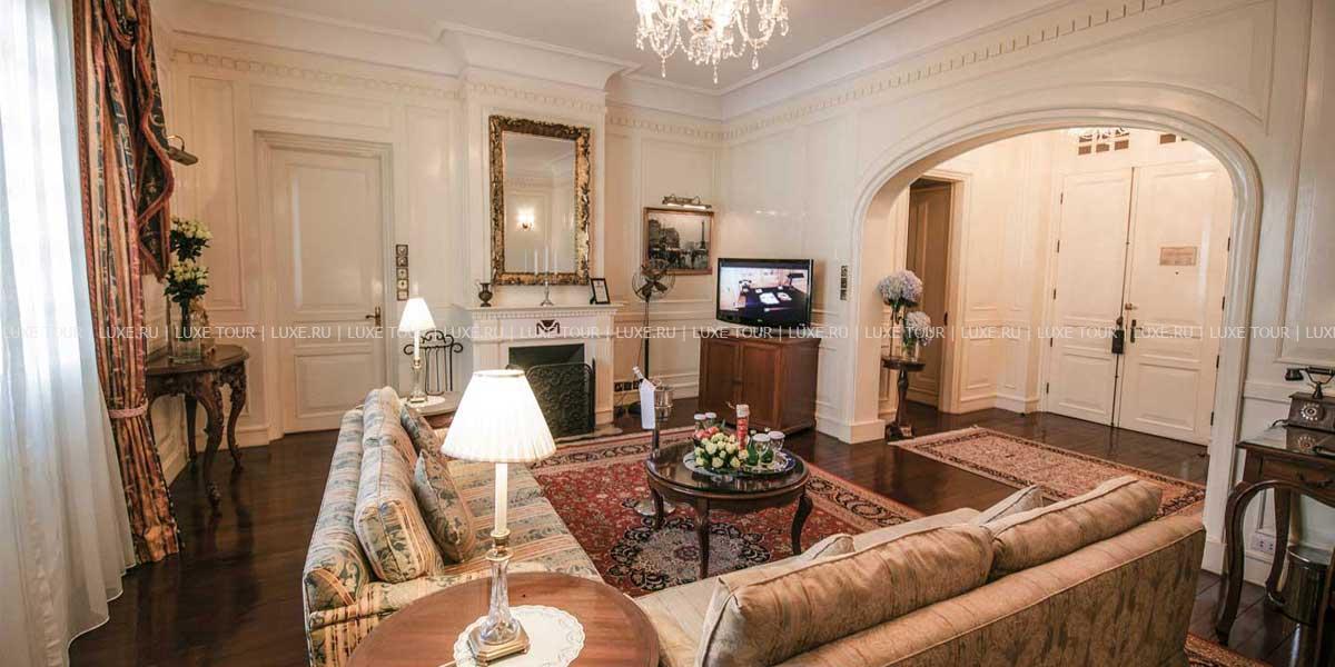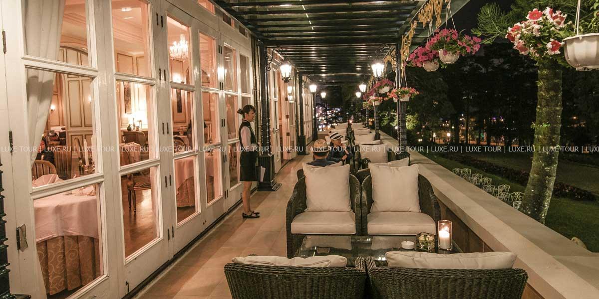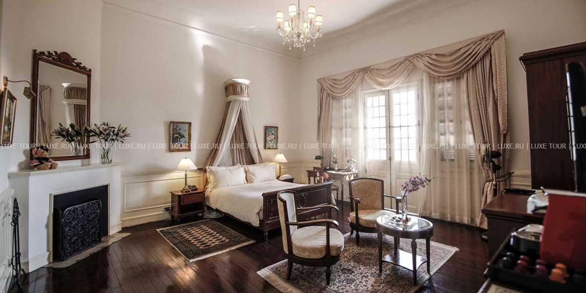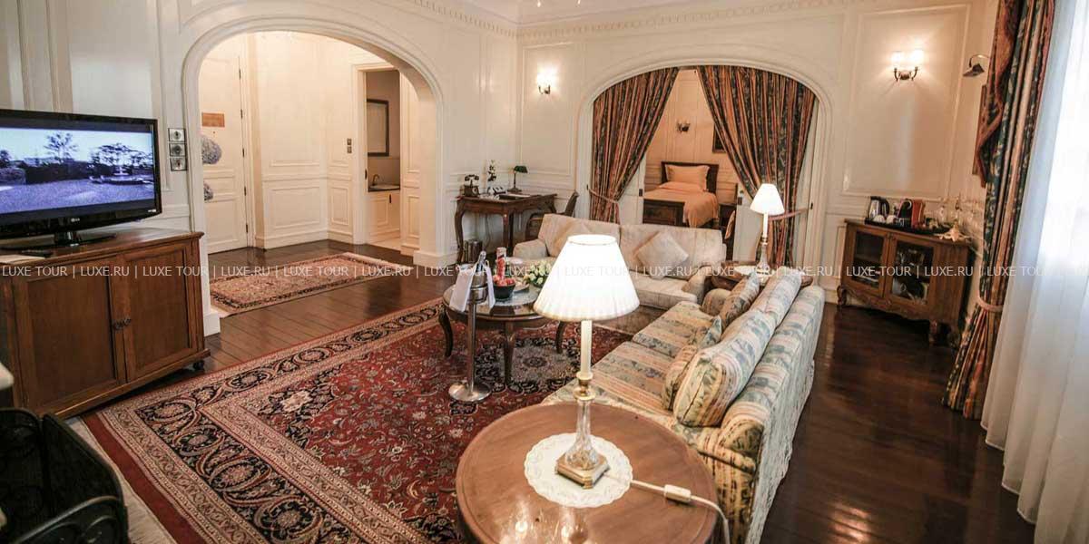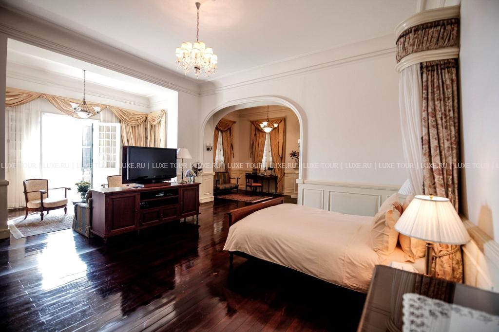 Отель Dalat Palace Luxury Hotel расположен в центре Далата на высоте 1500 м над уровнем моря в 30 км езды от аэропорта, рядом с озером Сюан Хыонг. Белоснежное здание гостиницы, построенное во французском колониальном стиле в 1922 году, утопает в зелени старинного роскошного парка. Высоченные сосны, яркие кустарники, просторные изумрудные лужайки и разбегающиеся дорожки придают особенное очарование торжественной лестнице парадного входа, уютным балкончикам и декоративным колоннам, моделирующим здание в соответствии с особенностями местного стиля. Один из самых красивых и престижных отелей Юго-Восточной Азии, Dalat Palace Luxury Hotel, в 1995 году был полностью отреставрирован и вернул свое былое величие, воскрешающее шарм и художественную манеру 20-х годов прошлого века. При реконструкции главный акцент был сделан на сохранение французского колониального стиля, уникальной архитектуры и художественного оформления. Из окон отеля открывается прекрасный вид на Далат, берег озера Сюан Хыонг и лужайку, где регулярно проводятся свадебные церемонии пар из высшего света Вьетнама. Отель предлагает 43 прекрасно декорированных номера с роскошными ванными комнатами. Интерьеры номеров и ресторанов щедро украшены живописью, скульптурой и восточными коврами из огромной коллекции отеля.