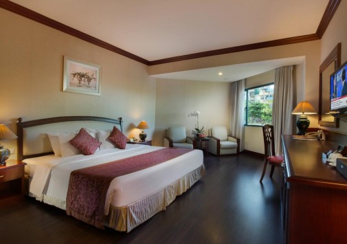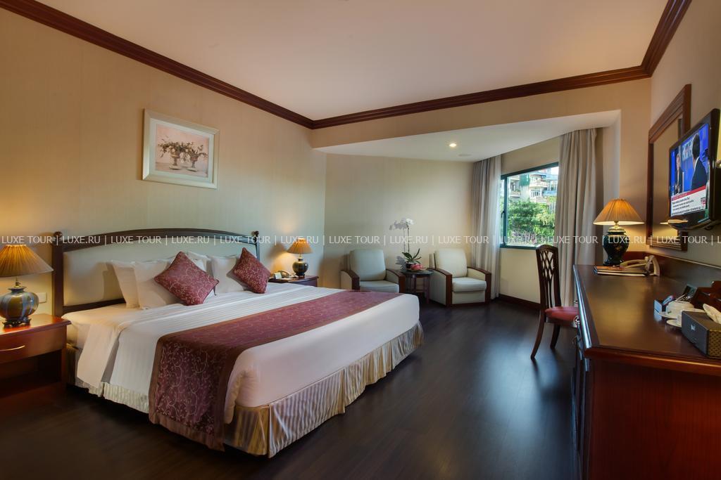 Современное здание гостиницы Halong Plaza примостилось на берегу залива Халонг, рядом с паромной станцией Baichay Ferry Station. Пышные тропические сады, золотистые пляжи, очаровательные крошечные островки и глубокая синева залива составляют удачную композицию, в которою идеально вписывается аккуратный бежевый корпус, возвышающийся у кромки воды. Великолепные виды и прекрасные возможности для занятия активными видами спорта составляют лишь малую толику многоликого обаяния гостиницы. Безупречный сервис, отличные рестораны, предлагающие блюда западной и азиатской кухни, стильный дизайн дополняют богатство инфраструктуры и центральное местоположение, делая отель идеальным выбором не только для праздных туристов, но и для тех, кто путешествует с деловыми целями.