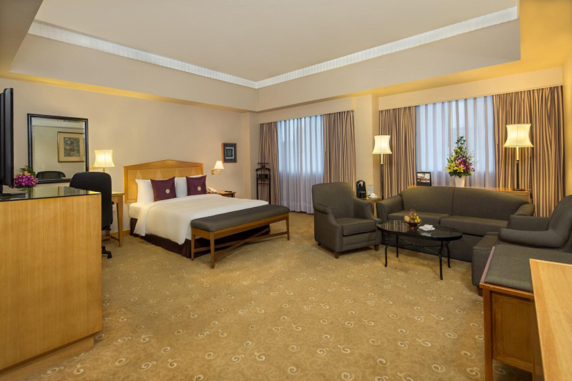 - 30 м2. Состоит из спальни с двуспальной кроватью или двумя кроватями twin, зоны отдыха, ванной комнаты с ванной. Вид на бульвар Nguyen Hue Boulevard или реку. Возможно объединение номеров. Максимальное размещение - 3 человека.