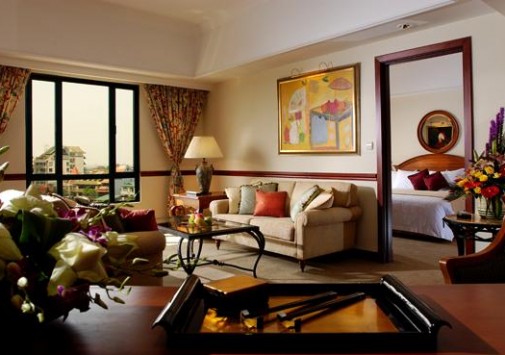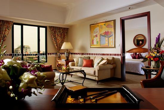 Sheraton Hanoi Hotel был открыт в марте 2004 года. Многоэтажное здание отеля расположено на живописном берегу озера West Lake среди благоустроенных садов. Во внутреннем дизайне отеля французский колониальный стиль удачно дополняется изысканным восточным колоритом. Внушительных размеров лобби украшено большим куполом с разноцветными витражами, прекрасно гармонирующими с великолепным мозаичным орнаментом пола. Просторные элегантно декорированные номера с высокими потолками и панорамными окнами предлагают прекрасные виды на озеро и городской горизонт. К услугам гостей превосходный спортивно-оздоровительный центр, включающий открытый бассейн, утопающий в зелени, освещаемый теннисный корт и тренажерный зал. Благодаря наличию многофункциональных залов является идеальным местом для проведения торжественных банкетов, свадебных церемоний, конференций и семинаров.