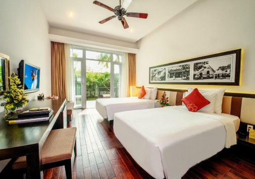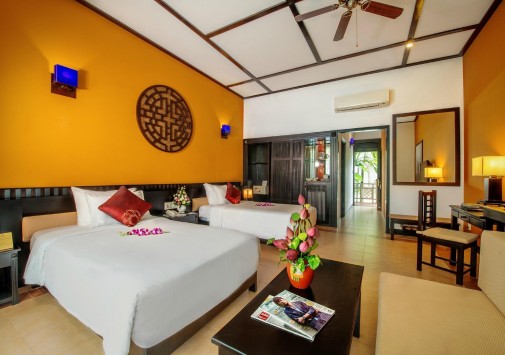 Hoi An Beach Resort расположен между рекой Девонг и знаменитым пляжем Куадай, в 4 км от древнего города Хойана. Отель представляет комплекс двух- и трехэтажных коттеджей-бунгало, построенных в стиле традиционной вьетнамской деревни и считается жемчужиной центрального Вьетнама, оазисом гармонии и покоя. Просторные комфортабельные номера с живописными видами декорированы с использованием теплых национальных мотивов. С открытой террасы ресторана и днем и ночью гости могут наблюдать насыщенную жизнь реки, а для всех желающих поупражняться в искусстве местной кулинарии предлагается мастер-класс шеф-повара. В отеле проводятся интереснейшие тематические шоу, знакомящие с повседневной жизнью и обычаями местных рыбацких деревушек, а также экскурсии в город-музей Хойан, бывший на протяжении многих веков крупнейшим торговым портом Юго-Восточной Азии и впитавший культурные и архитектурные традиции многих стран.