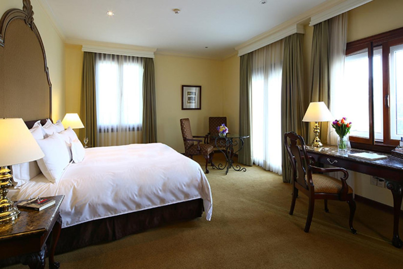 - В отеле 83 комфортабельных номера следующих категорий: 34 Master Rooms, 36 Grand Class Rooms, 6 Governor Rooms, 4 Governor de Luxe Suites, 3 Presidential Suites. В просторных номерах с высокими потолками, выполненных в бежевых тонах, — элегантный дизайн, соединяющий классический и традиционный перуанский стили: изящная мебель из темного полированного дерева, антикварные произведения искусства, ванные комнаты, отделанные мрамором; большие окна номеров выходят на спокойный район Сан-Исидро.