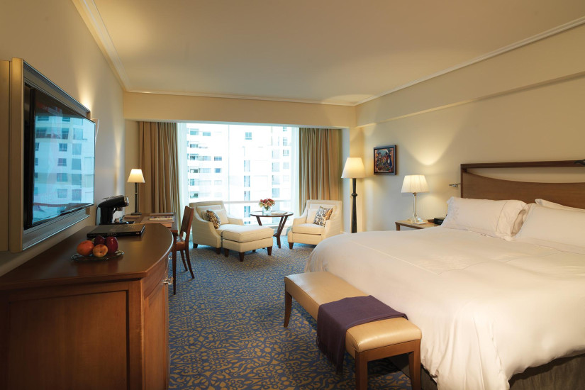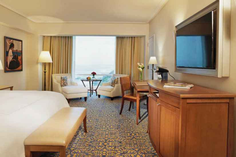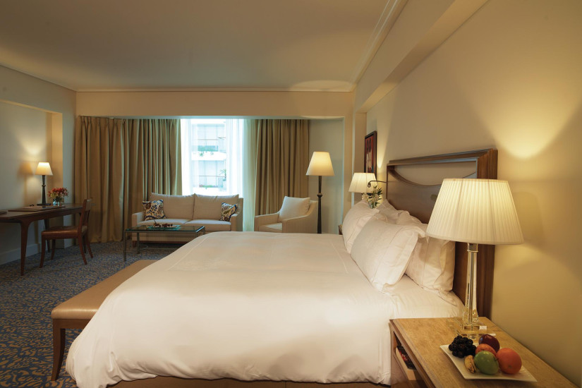 - 45 м2. Состоит из спальни с кроватью king-size или двумя кроватями twin, зоны отдыха и рабочей зоны, просторной ванной комнаты с ванной и отдельным душем. Вид на город. Гостям номера предоставляются дополнительные услуги Executive Lounge. Возможно объединение номеров. Максимальное размещение 2 взрослых + ребенок до 12 лет.