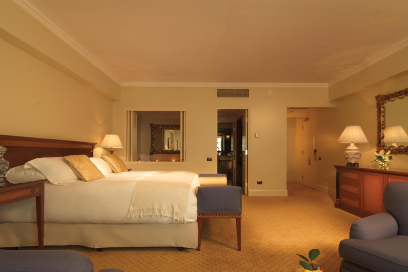 - 130 м2. Состоит из спальни с кроватью king-size, отдельной гостиной с обеденной зоной, ванной комнаты с ванной и отдельным душем, террасы с видом на город. Гостям номера предоставляются дополнительные услуги Executive Lounge . Возможно объединение с номером категории Presidential Pool Suite. Максимальное размещение 2 взрослых + ребенок до 12 лет.
