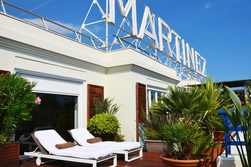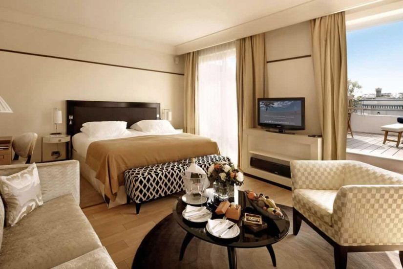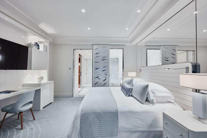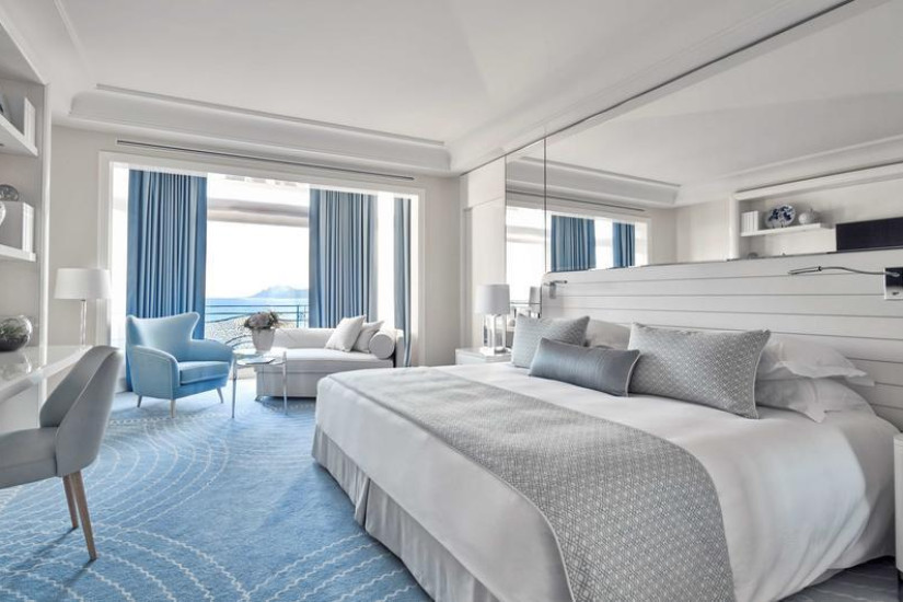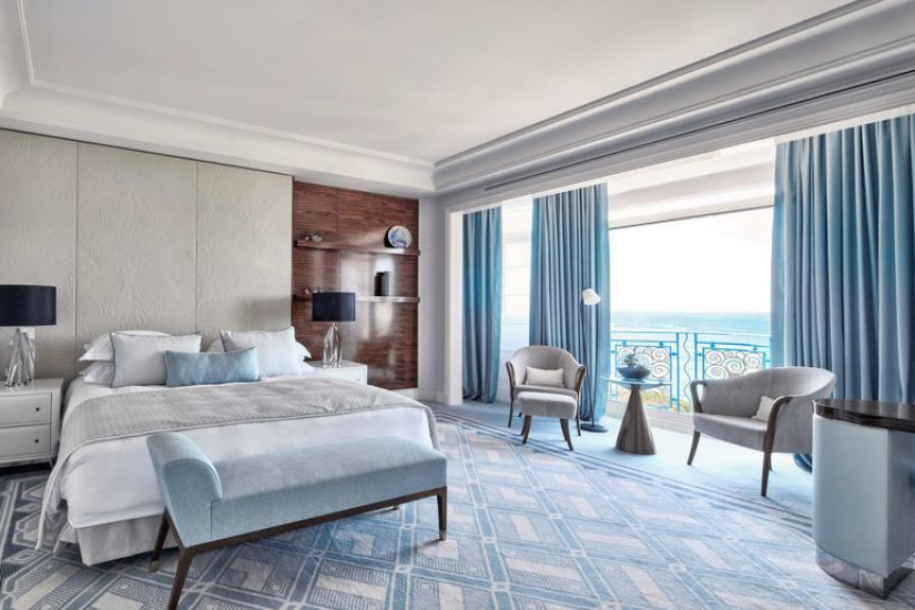 215 м2 - 1670 м2. Состоит из одной, двух, трех или четырех спален с кроватями king-size (при совмещения номеров), просторной гостиной, столовой, нескольких ванных комнат с хаммамом и сауной, огромной террасы с джакузи с видом на море и набережную Круазе. Номер расположен на 8 этаже.