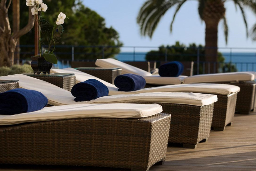 50 м2 + терраса 30 м2. Состоит из спальни с кроватью king-size, гостиной зоны, ванной комнаты, террасы с частичным видом на Средиземное море. Интерьер оформлен в характерном средиземноморском стиле: теплые тона, драпировки золотых тонов, изысканная мебель из тика — создают неповторимое настроение. Расположен на 7 этаже.