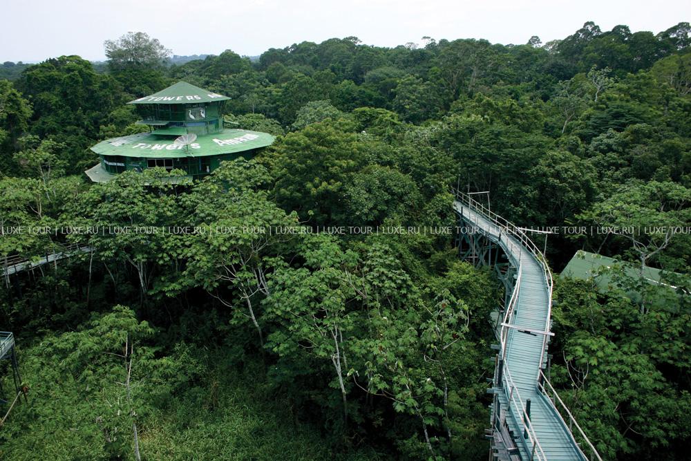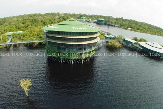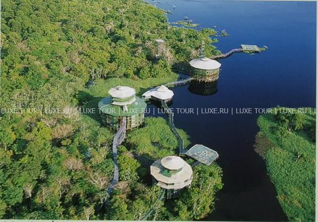 Уникальный комплекс состоит из семи башен-бунгало на сваях, возвышающихся над тропическим лесом и соединенных между собой системой деревянных мостиков длиной около 8 км. Это чудесная архитектурная конструкция предлагает гостям великолепные возможности для изучения экзотического мира Амазонии и не нарушает экологического равновесия.