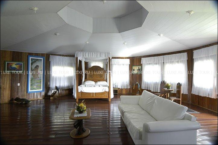 К услугам гостей номера различных категорий, включая роскошный Cosmic Suite – номер с куполообразным потолком, усыпанным сверкающими звездами, и круговым панорамным видом на реку и тропический лес.