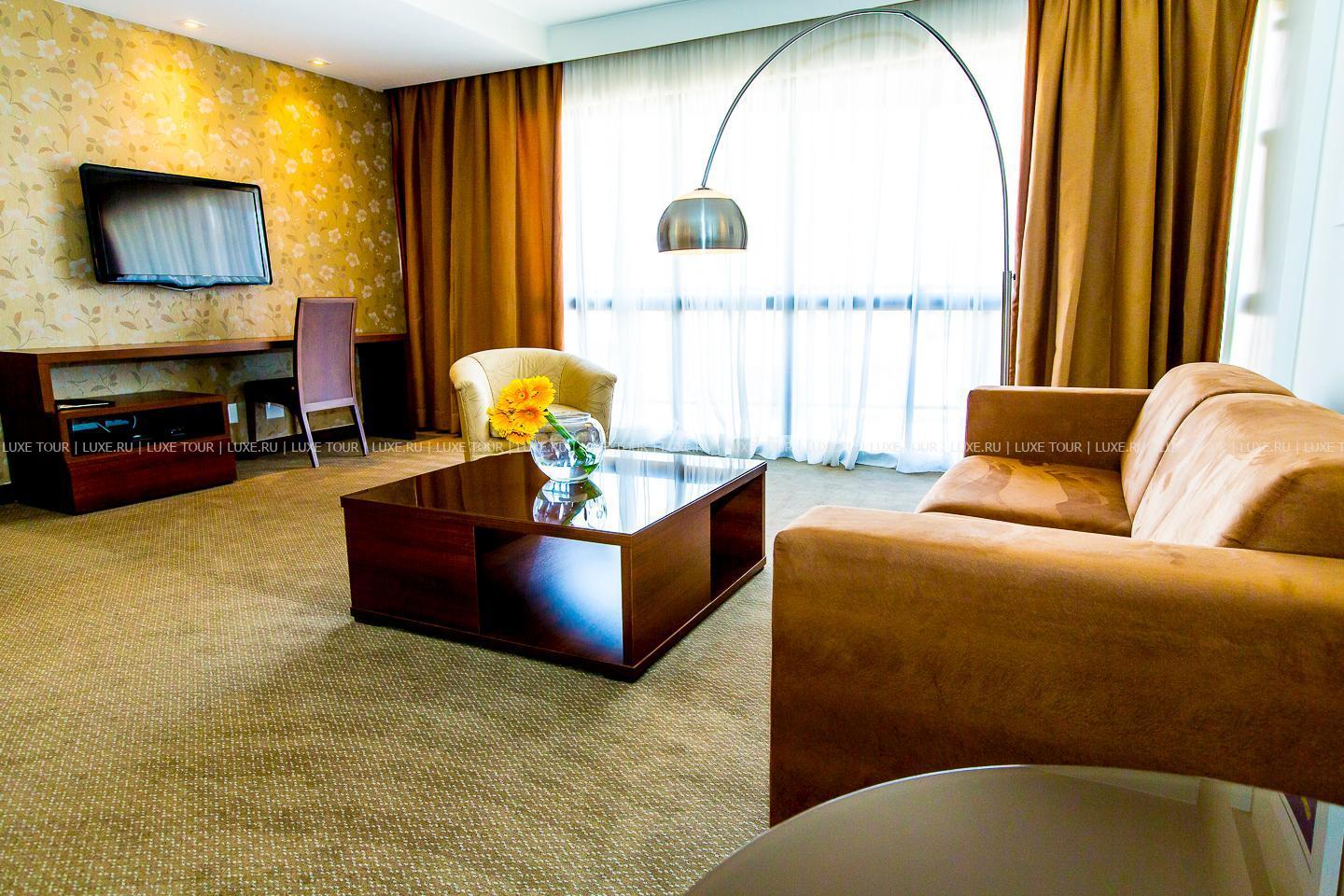 Отель предлагает 389 недавно обновленных комфортабельных номеров с панорамными окнами и балконами. Тщательно продуманные интерьеры выдержаны в пастельной цветовой гамме и украшены живописью и цветочными композициями.
